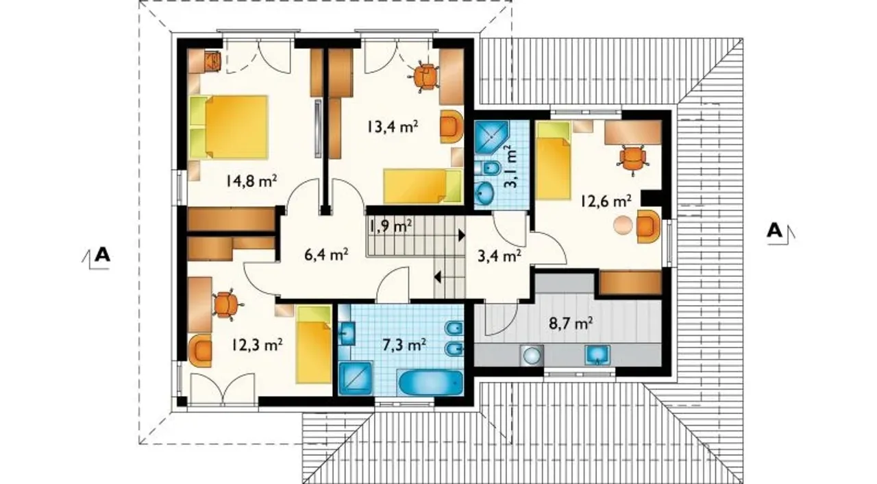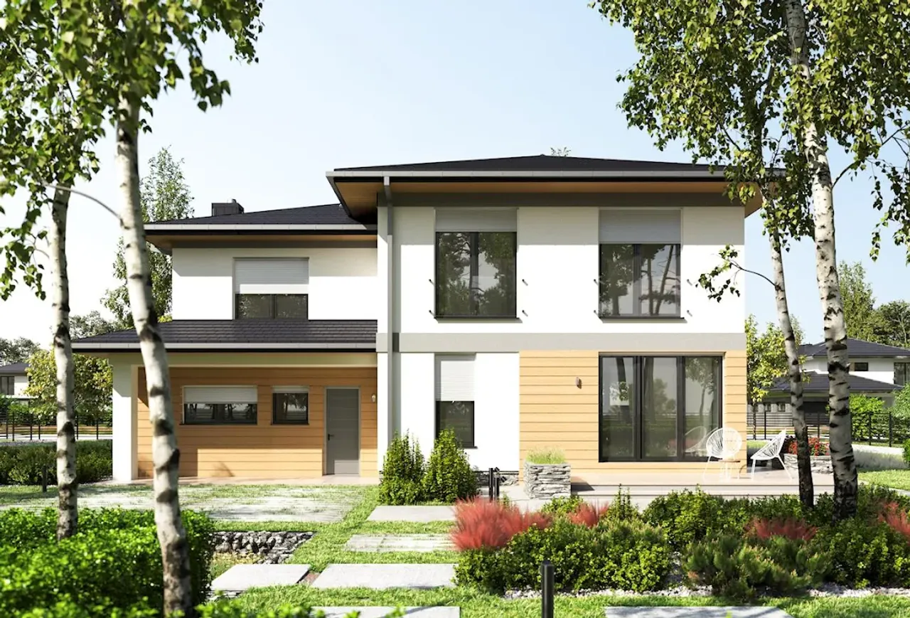 - elewacje - pokazują dokładny wygląd domu od frontu, z tyłu i z boków