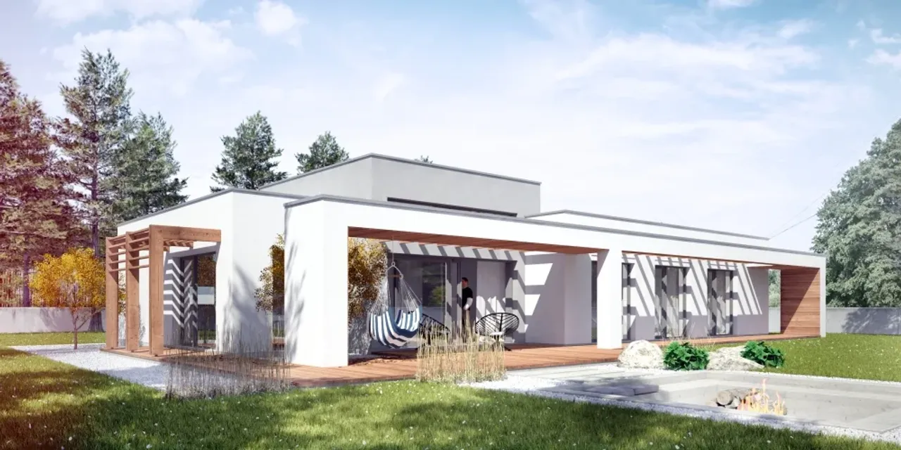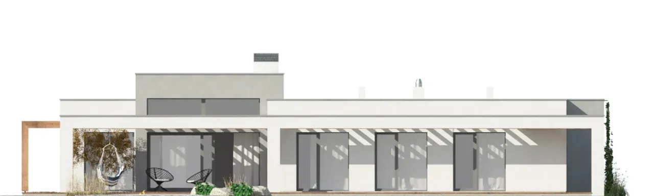 Otwórz się na nową jakość życia dzięki nowoczesnemu projektowi domu całorocznego, idealnego dla rodzin ceniących przestrzeń i wygodę. Parterowa bryła, płaski dach oraz funkcjonalne rozwiązania sprawiają, że to propozycja dla wymagających inwestorów, którzy nie uznają kompromisów między estetyką a praktycznością. Dom wybudowany na podstawie tego projektu zachwyci zarówno nowoczesnym stylem, jak i bezproblemowym użytkowaniem przez lata.