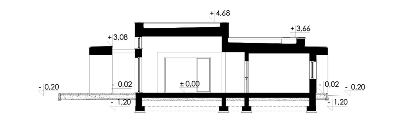 W projekcie zastosowano ściany zewnętrzne z pustaka ceramicznego LEIER o grubości 25 cm, dodatkowo ocieplone styropianem Termo Organika o grubości 20 cm i pokryte tynkiem - to gwarancja wysokiej termoizolacyjności oraz solidnego, cichego domu. Stropodach niewentylowany żelbetowy z membraną dachową zabezpiecza całą konstrukcję, skutecznie chroniąc ją przed wpływem czynników atmosferycznych oraz stratami ciepła.