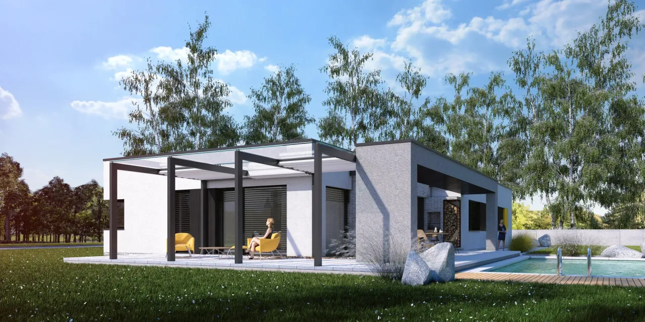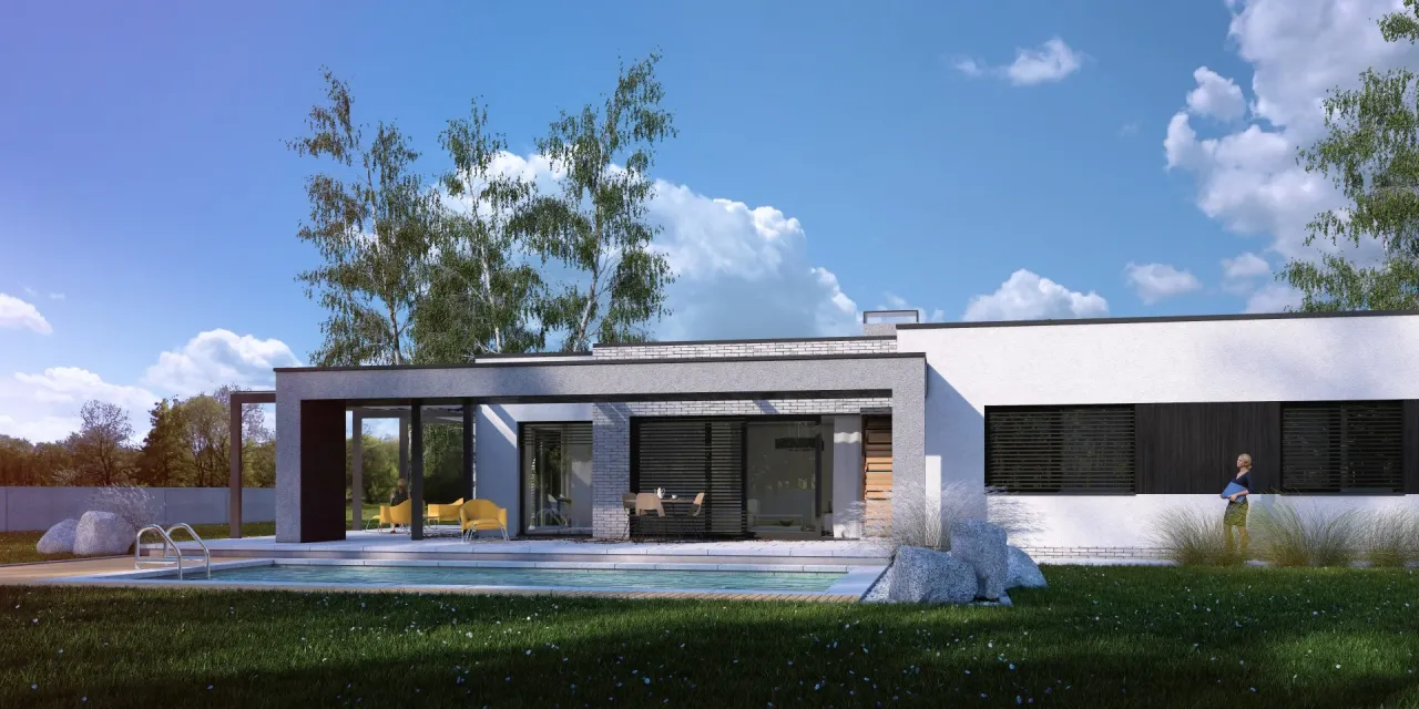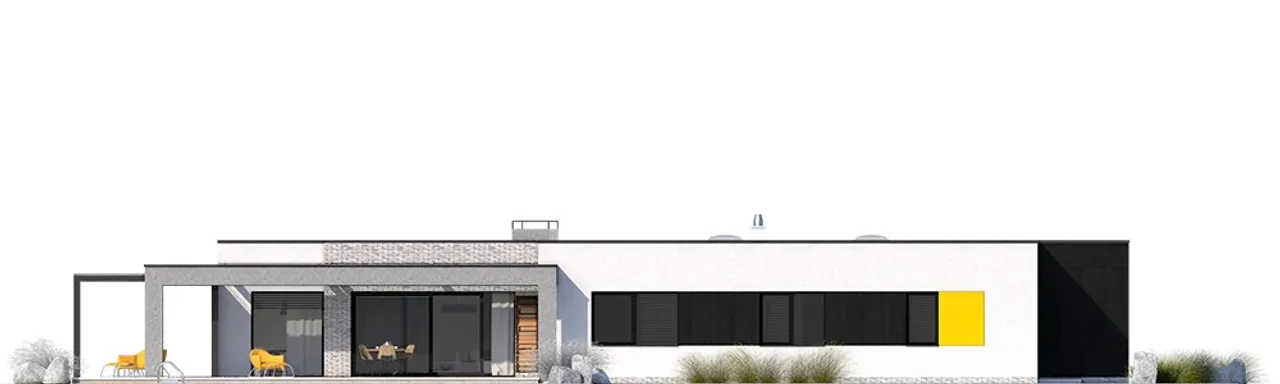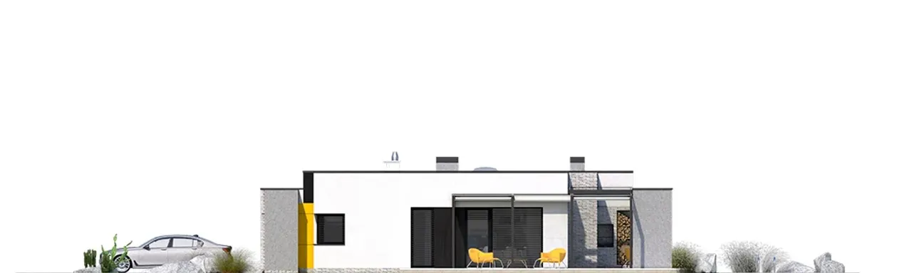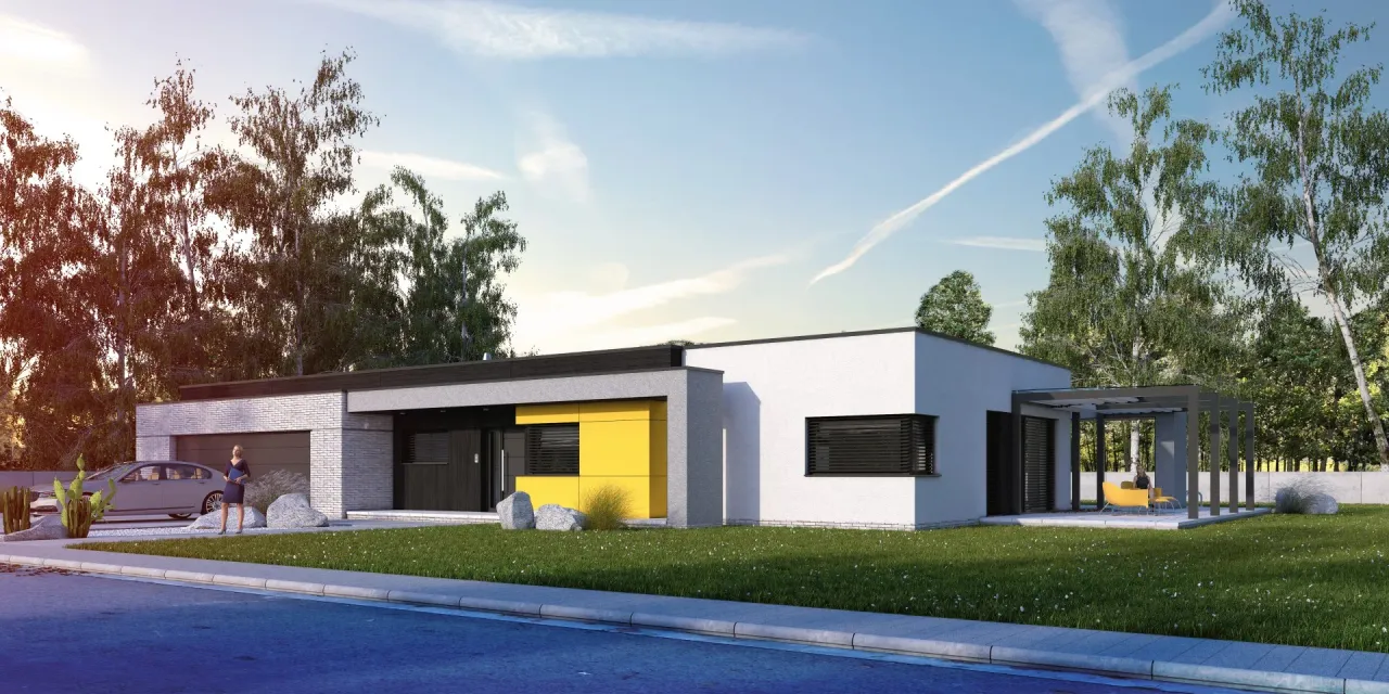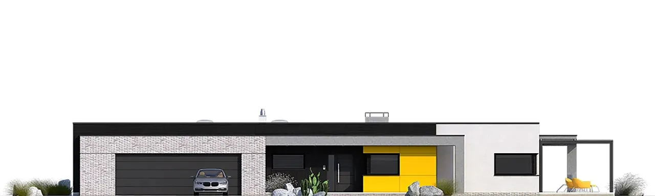 Dom wybudowany według projektu Illecebrosus VI G3 Małachit to nowoczesna parterowa rezydencja idealna dla rodzin szukających rozwiązań premium. Zastosowanie płaskiego dachu o kącie nachylenia 2° oraz żelbetowego, niewentylowanego stropodachu z membraną dachową zapewnia wysoką szczelność i niebanalny wygląd. Podpiwniczenie domu to dodatkowa powierzchnia do dowolnej aranżacji - magazyn, siłownia lub pokój rozrywki.