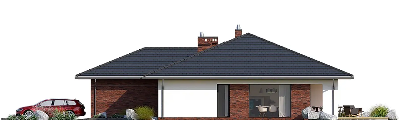 Przemyślany układ pomieszczeń, przestronny garaż na dwa samochody oraz duża kotłownia to synonimy wygody i bezpieczeństwa. Nowoczesny projekt umożliwia nie tylko wygodne mieszkanie, ale też adaptację przestrzeni do indywidualnych potrzeb.