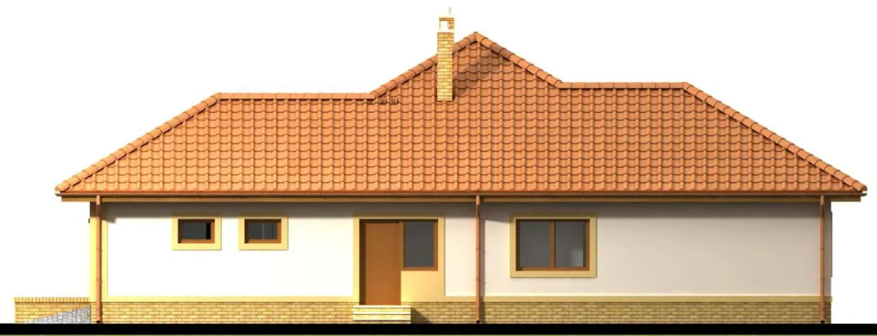 Dom wybudowany na podstawie tego projektu to znak komfortu i funkcjonalności - parterowa konstrukcja ułatwia codzienne życie, eliminując konieczność chodzenia po schodach, a brak piwnicy obniża koszty budowy i eksploatacji. Układ czterech pokoi pozwala dowolnie zaaranżować przestrzeń dla dorosłych oraz dzieci, dając swobodę kreowania wymarzonego środowiska rodzinnego.