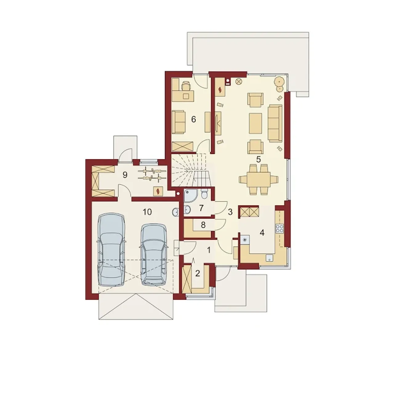 Gotowy projekt domu Ines 2 PS to ciekawy, funkcjonalny projekt domu w technologii murowanej. Ines 2 PS posiada garaż dwustanowiskowy zlokalizowany w bryle budynku. Ines 2 PS to dom parterowy z poddaszem użytkowym w stylu tradycyjnym o kubaturze 523.96 m3. Ines 2 PS to dom całoroczny z dachem dwuspadowym o kącie nachylenia 45 stopni.