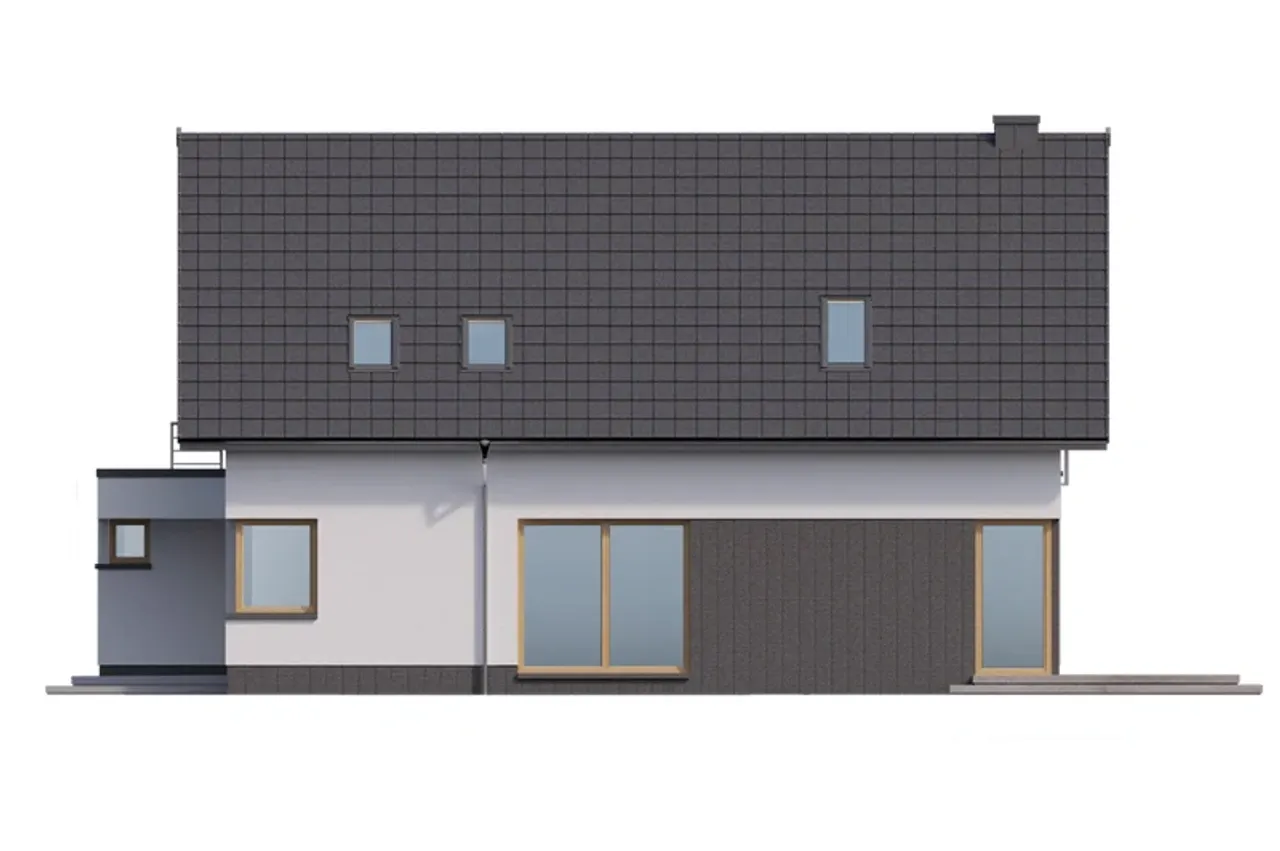 Gotowy projekt domu Ines PS to ciekawy, funkcjonalny projekt domu w technologii murowanej. Ines PS posiada garaż jednostanowiskowy zlokalizowany w bryle budynku. Ines PS to dom parterowy z poddaszem użytkowym w stylu tradycyjnym o kubaturze 484.58 m3. Ines PS to dom całoroczny z dachem dwuspadowym o kącie nachylenia 45 stopni.