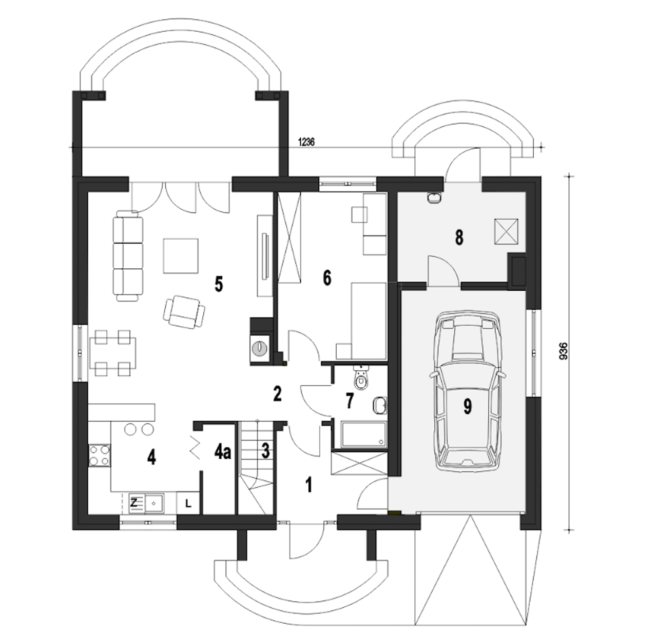 Wypełnij formularz i otrzymaj rysunki w pdf z dokładnymi wymiarami budynku i pomieszczeń (długość, szerokość, wysokość) dla projektu Inka II z garażem 1-st. A na paliwo stałe