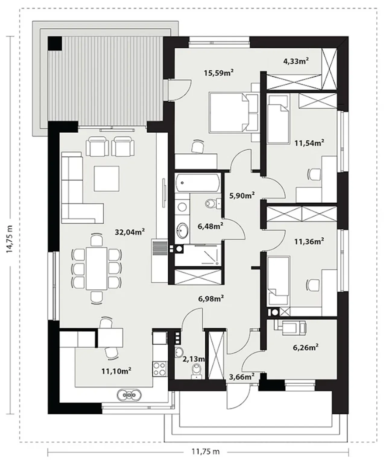 Wypełnij formularz i otrzymaj rysunki w pdf z dokładnymi wymiarami budynku i pomieszczeń (długość, szerokość, wysokość) dla projektu Irysek 5