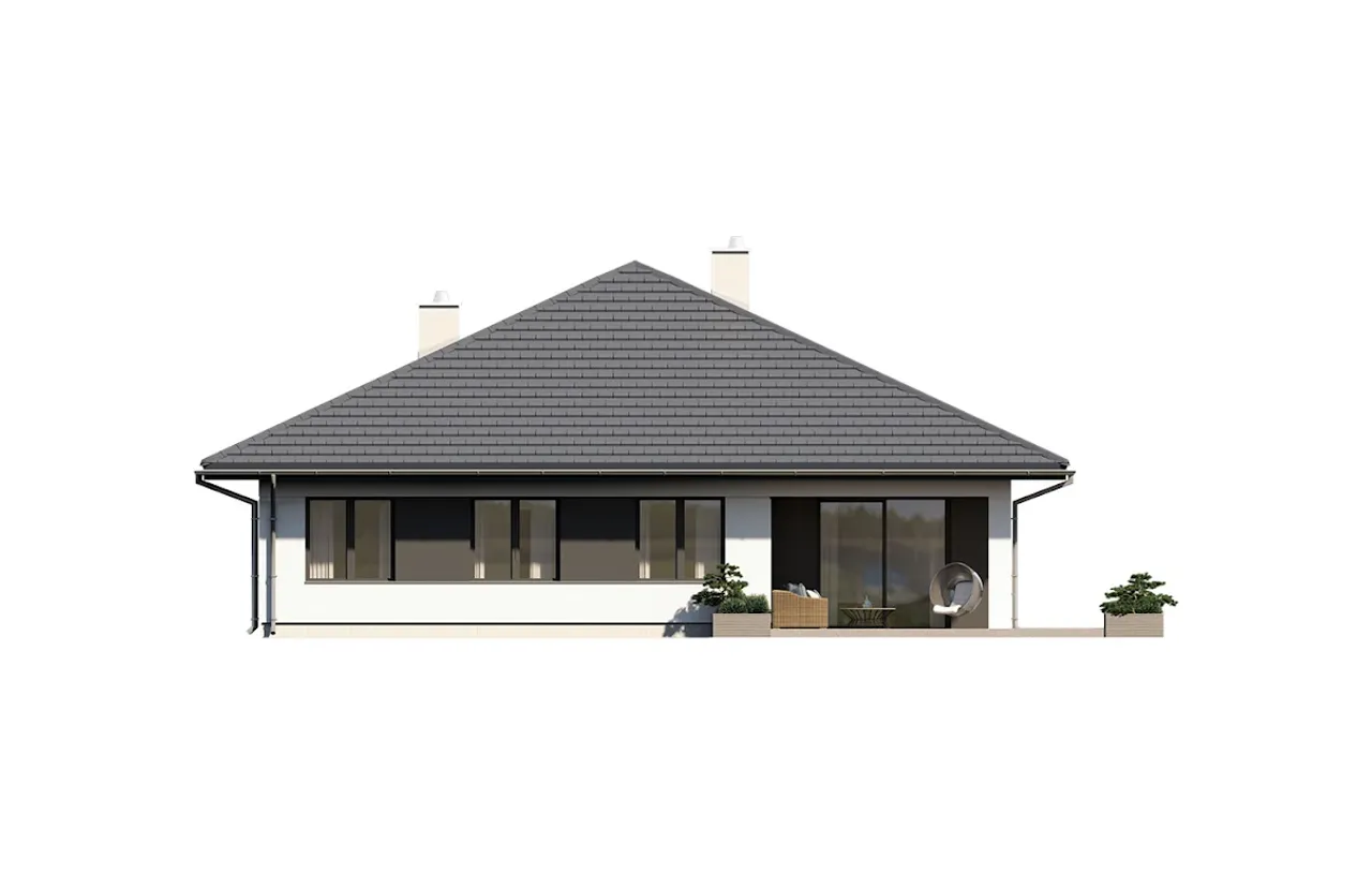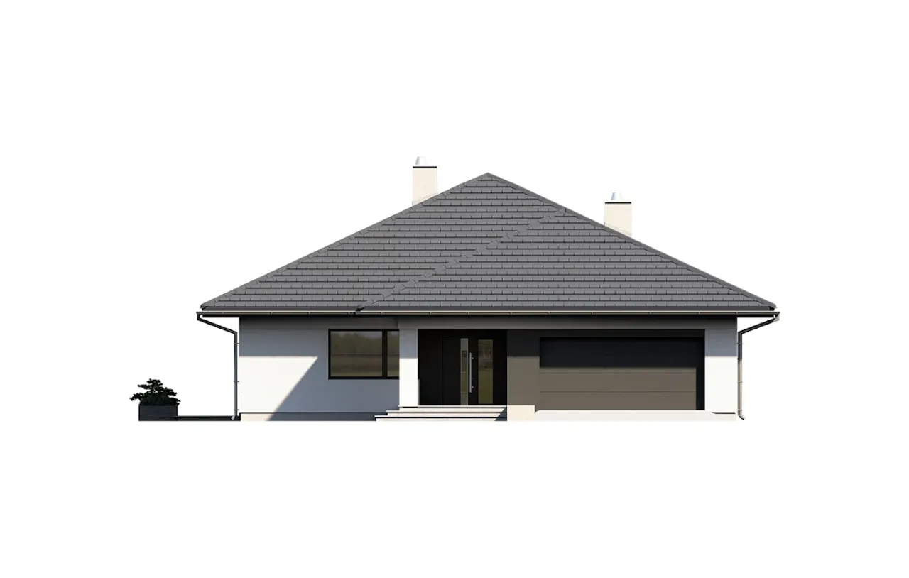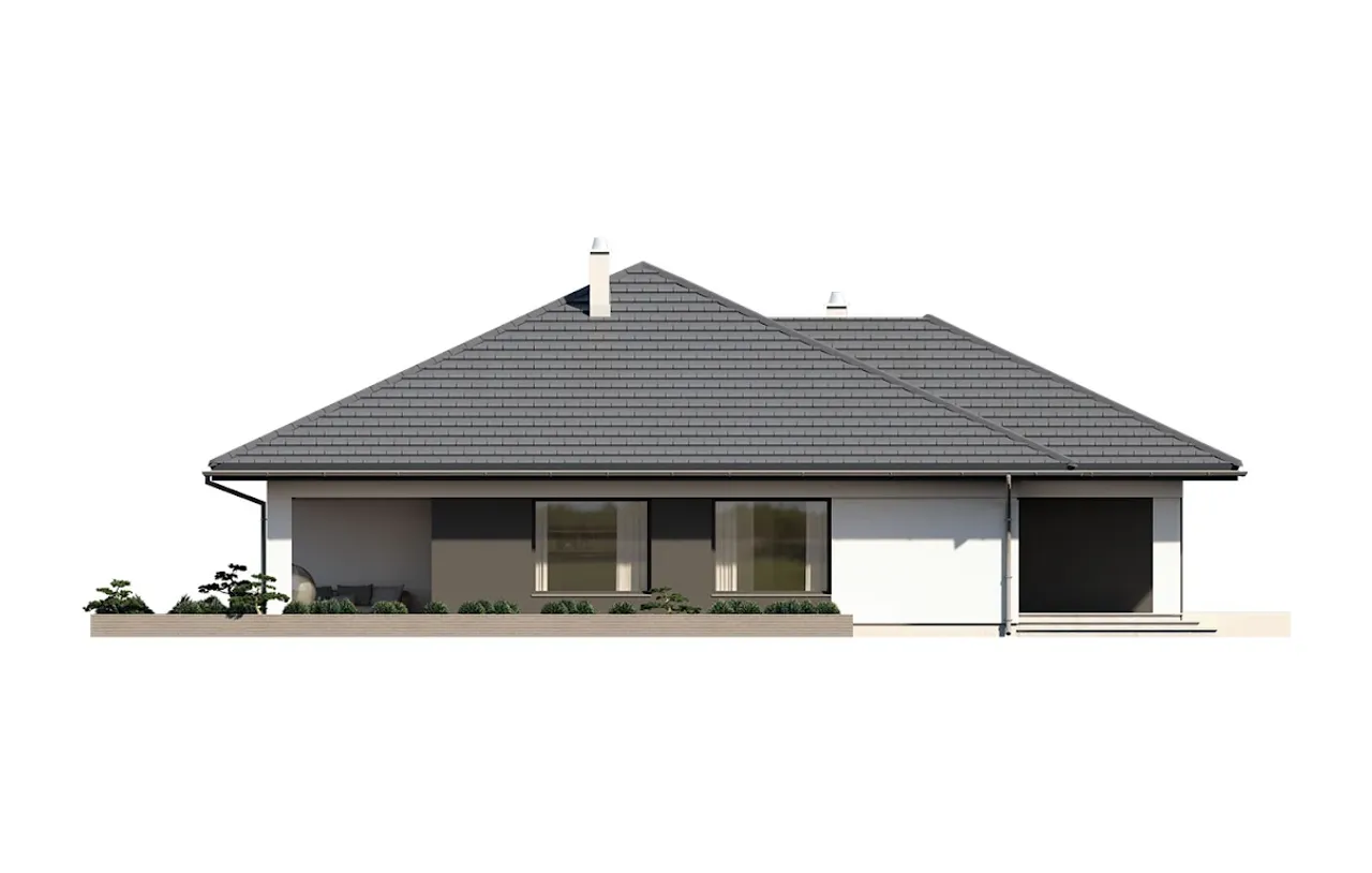 Projekt domu Irysek 7 to idealna propozycja dla osób ceniących przestrzeń, funkcjonalność i tradycyjny styl architektury. Dom z komfortowym garażem na dwa auta, dużą kotłownią i kominkiem został zaprojektowany z myślą o rodzinach poszukujących wygodnych, całorocznych rozwiązań. Przemyślana forma na planie litery T pozwala optymalnie wykorzystać działkę, a przestronny taras doskonale łączy wnętrze z otaczającą zielenią.