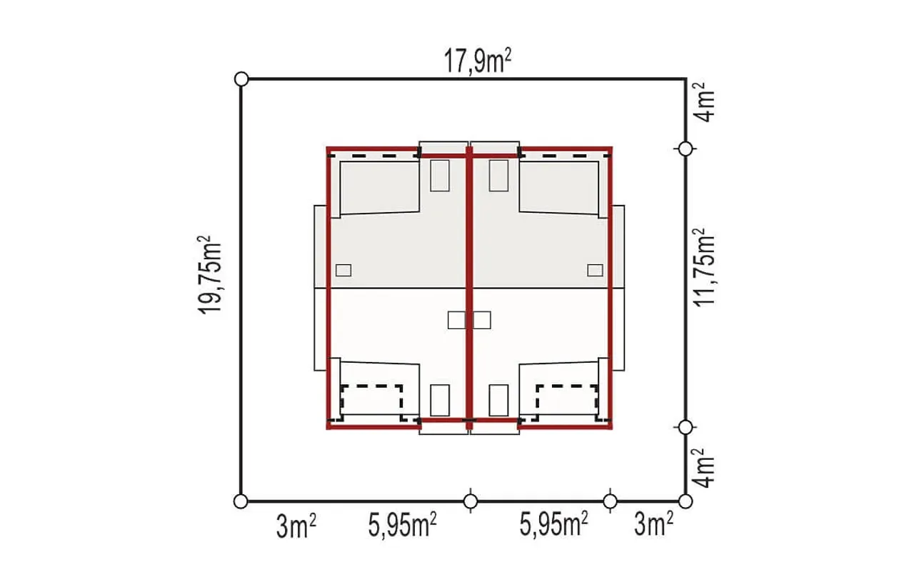 Wypełnij formularz i otrzymaj rysunki w pdf z dokładnymi wymiarami budynku i pomieszczeń (długość, szerokość, wysokość) dla projektu Iskra A dwurodzinny (jednorodzinny dwulokalowy)