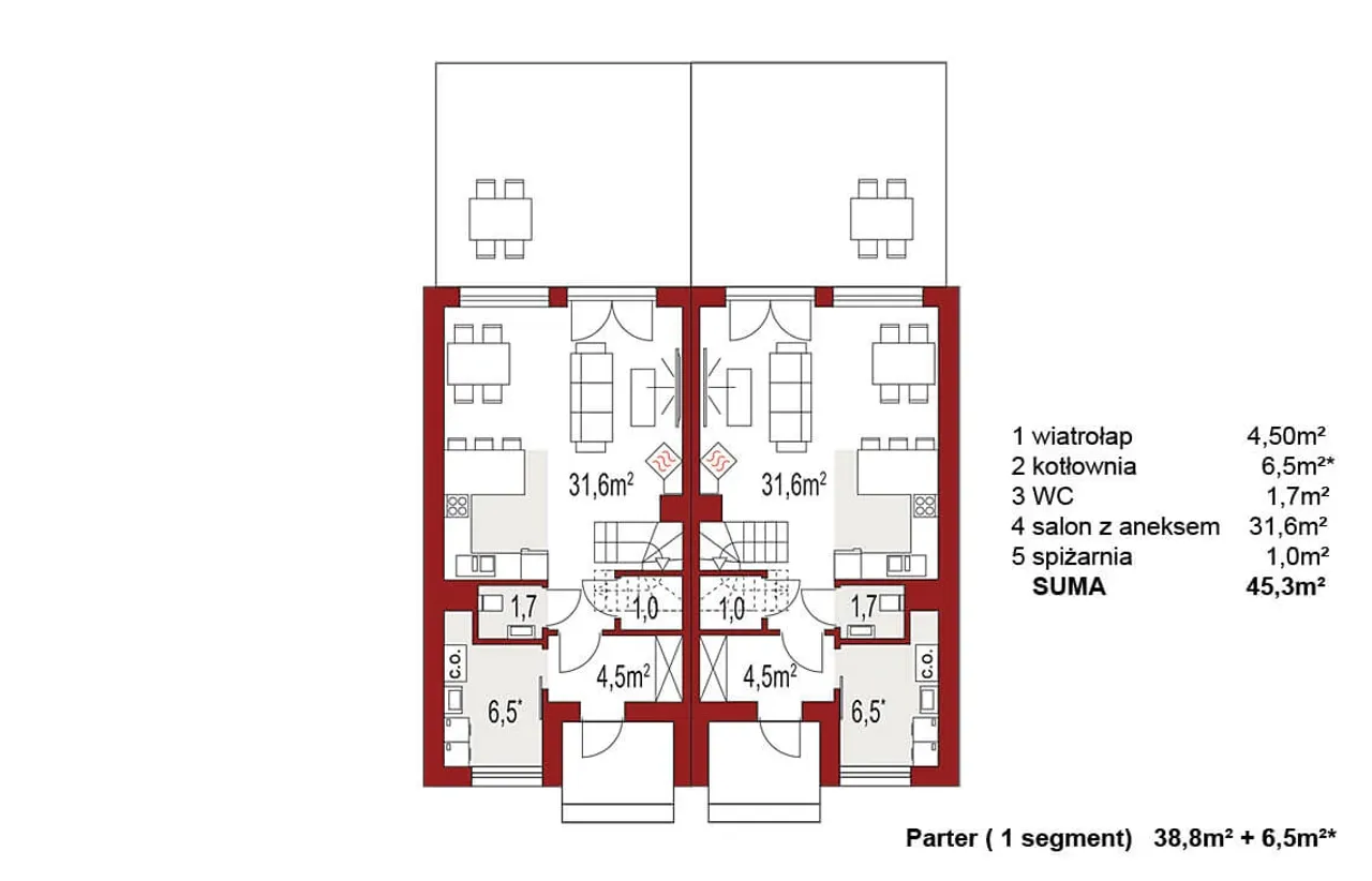 Wypełnij formularz i otrzymaj rysunki w pdf z dokładnymi wymiarami budynku i pomieszczeń (długość, szerokość, wysokość) dla projektu Iskra bliźniak C