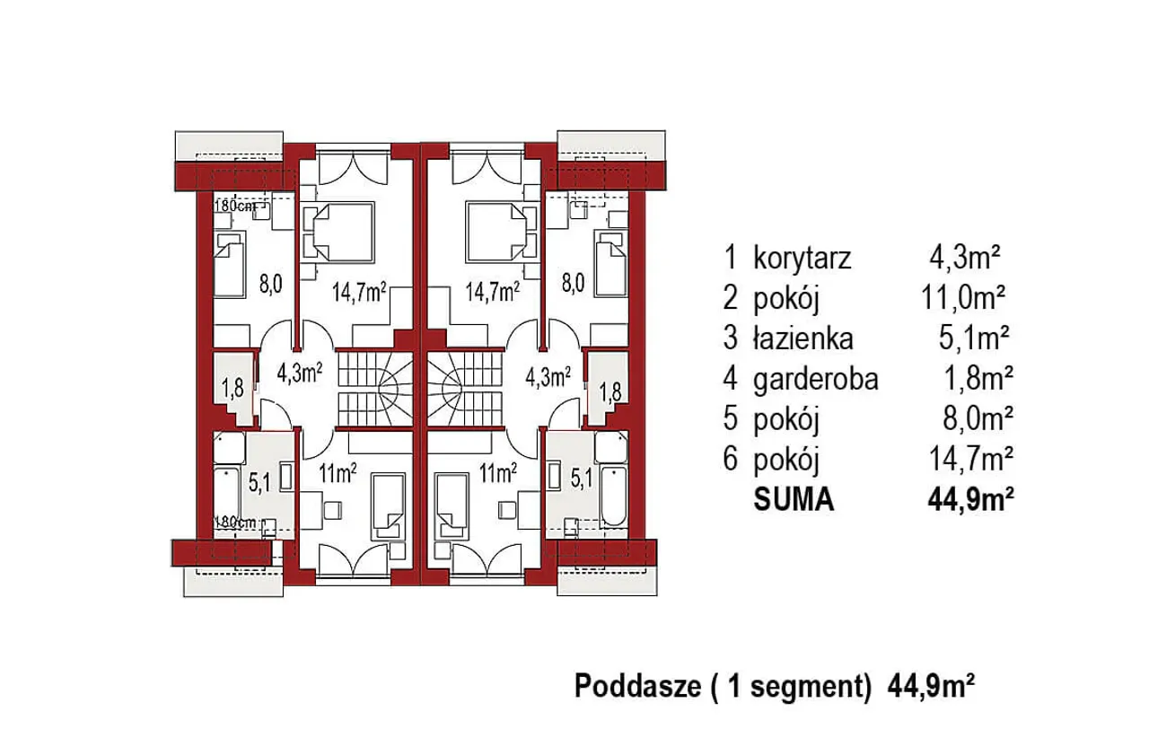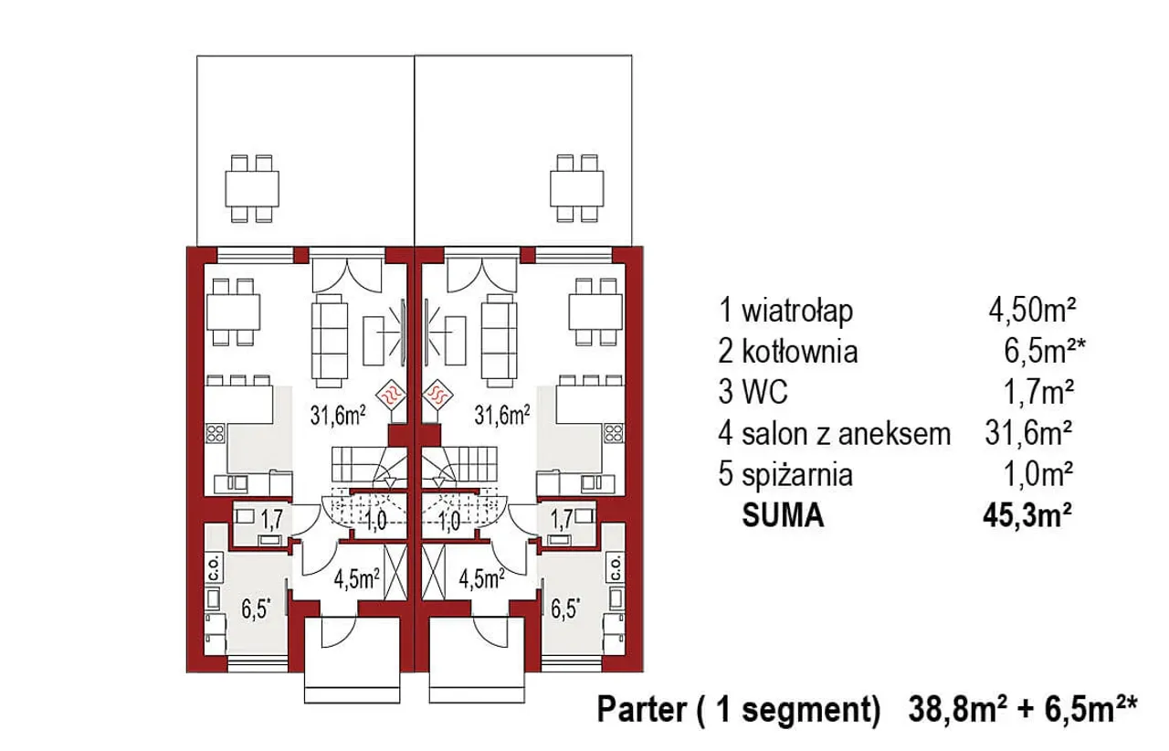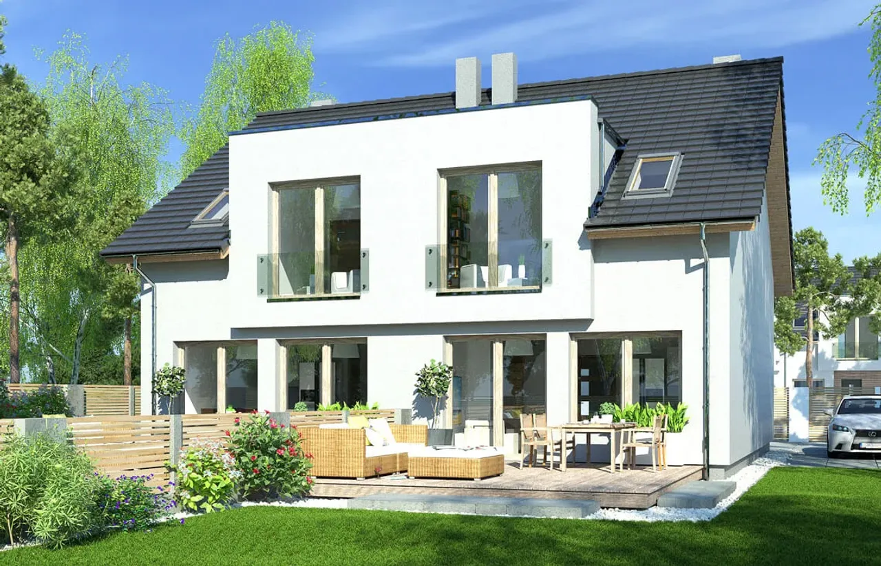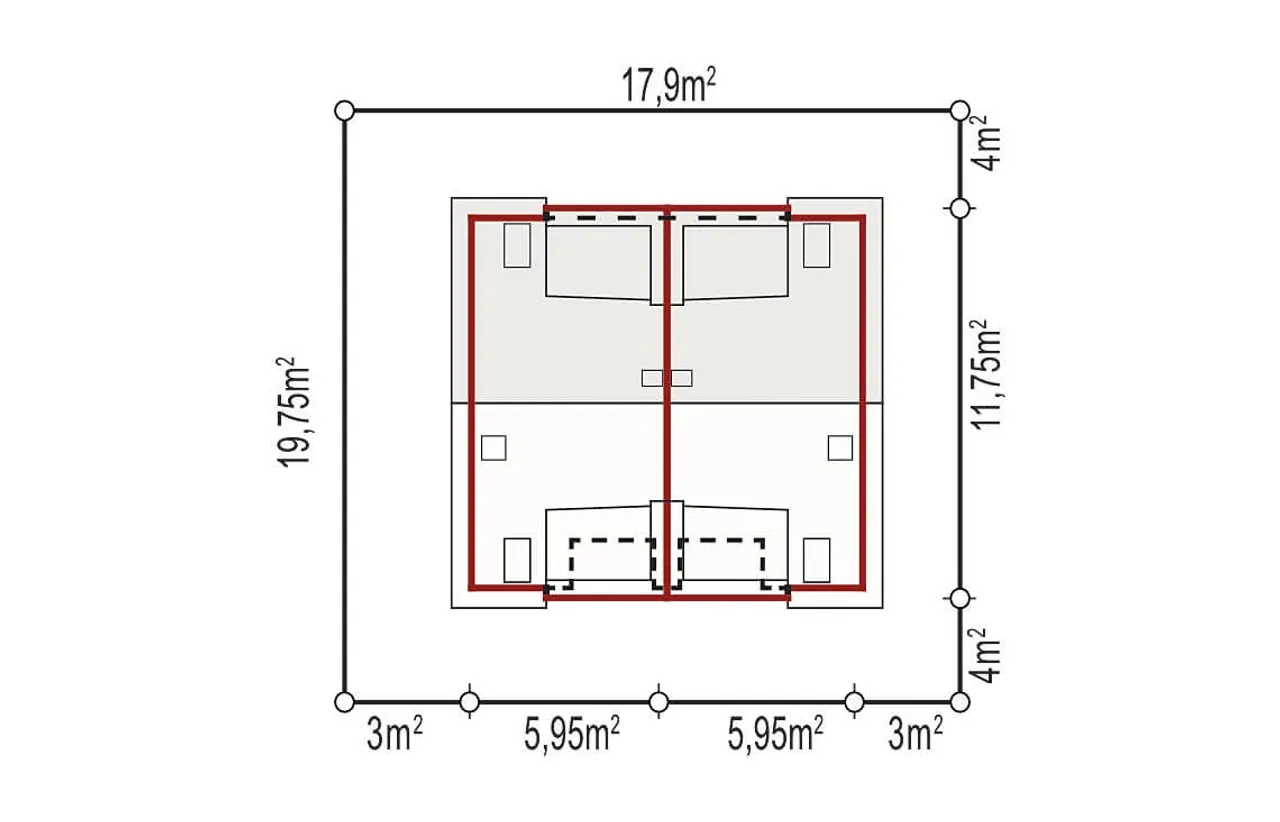 Wypełnij formularz i otrzymaj rysunki w pdf z dokładnymi wymiarami budynku i pomieszczeń (długość, szerokość, wysokość) dla projektu Iskra C dwurodzinny (jednorodzinny dwulokalowy)