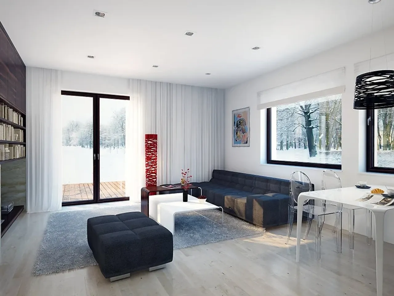 Dom bardzo mi się spodobał. Zdecydowałem wcześniej, że kupie projekt domu energooszczędnego. Budowa takiego domu jest troszkę droższa - przynajmniej tak słyszałem, dlatego szukałem domu o jak najprostszej bryle z dachem dwuspadowym albo płaskim. Co prawda podobają mi się domy w stylu nowoczesnym, a te z płaskim dachem zazwyczaj są właśnie w takim stylu. Jednak jak dla mnie większość projektów domów z płaskim dachem była jednak zbyt awangardowa i postanowiłem jednak szukać wśród projektów domów z dachem dwuspadowym. "Projekt Jabłoń " przypadł mi do gustu, bo jest prosty, jest nowoczesny ale mieści w tych projektach, które nie są aż zanadto wymyślne.