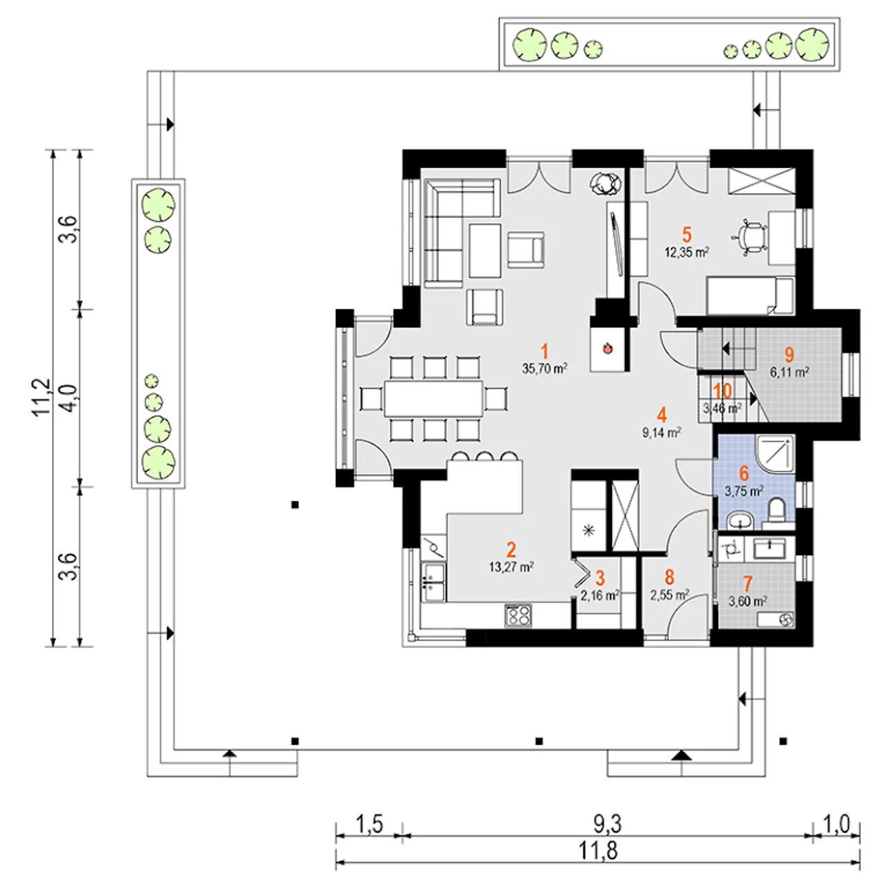 Szerokość budynku 11.8 m |