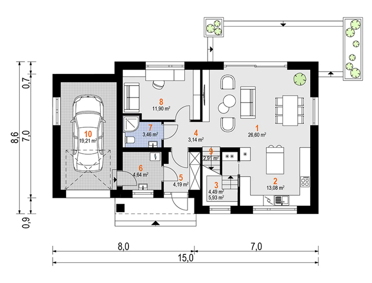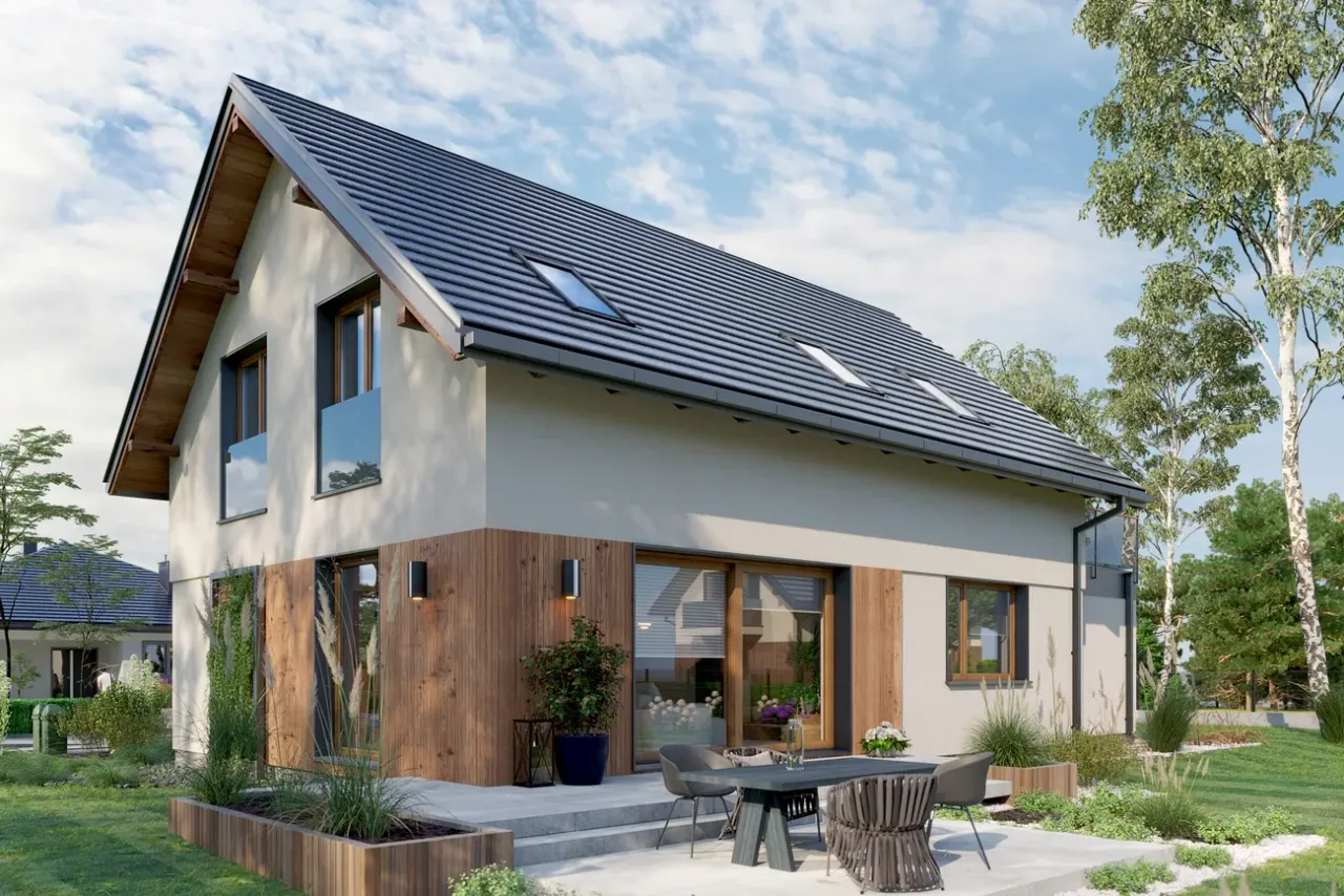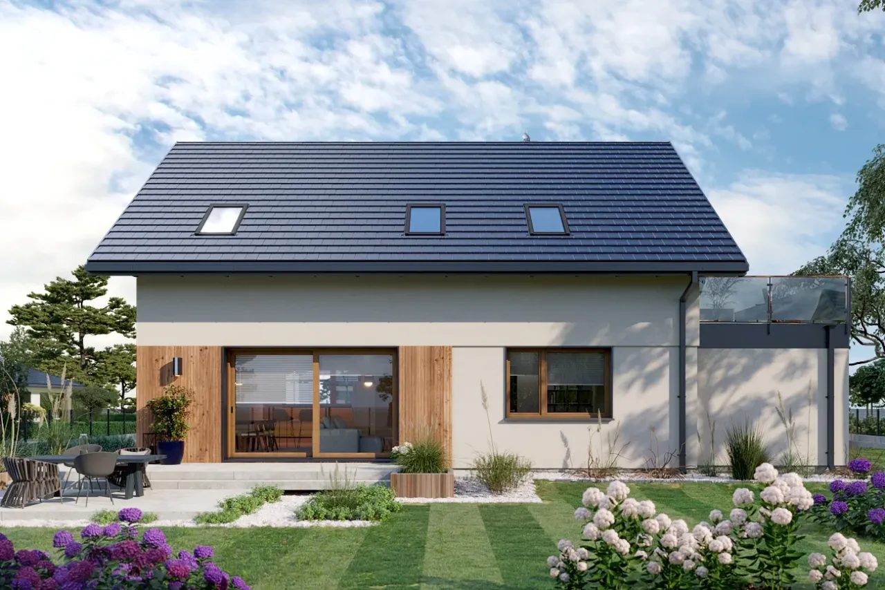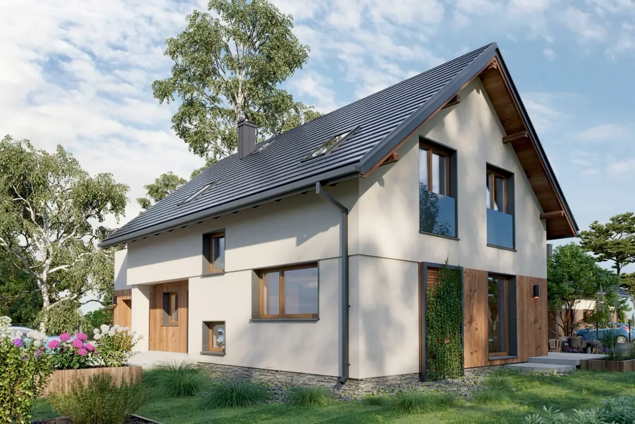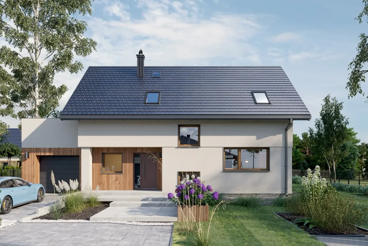 Projekt domu Jagoda Rex to prawdziwa perełka w świecie współczesnej architektury. Jego zewnętrzny wygląd urzeka eleganckim stylem, a wnętrza zachwycają funkcjonalnością i nowoczesnymi rozwiązaniami. Duże okna zapewniają obfitość naturalnego światła, a dach wyróżnia się ciekawą linią. Główne wejście jest zaprojektowane z wielką klasą, a detale architektoniczne przyciągają wzrok. Urok tego projektu jest absolutnie niepowtarzalny, a proporcje budynku zostały starannie wyważone, co czyni bryłę domu harmonijną i spójną. Taki dom z pewnością zrobi wrażenie na gościach, a jego wyjątkowa przestrzeń daje ogromne możliwości aranżacyjne. Zdecydowanie rozważam zakup tego projektu oraz budowę domu na jego podstawie.