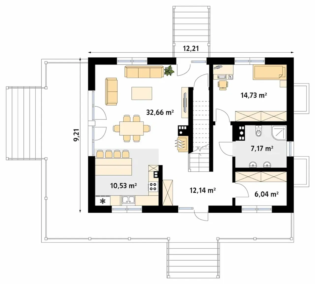 Szerokość budynku 12.21 m |