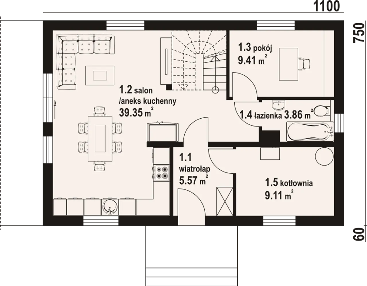 Wypełnij formularz i otrzymaj rysunki w pdf z dokładnymi wymiarami budynku i pomieszczeń (długość, szerokość, wysokość) dla projektu Janowo ag m