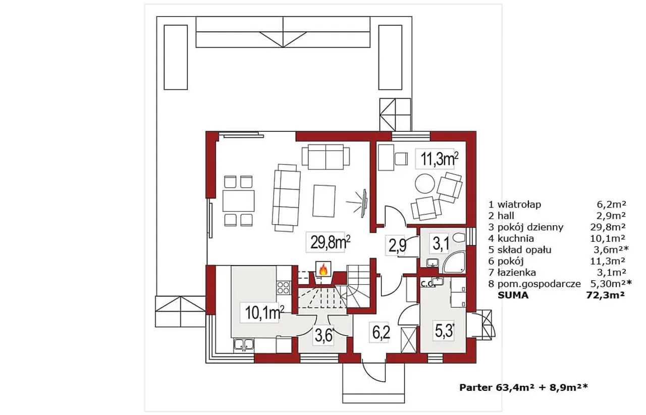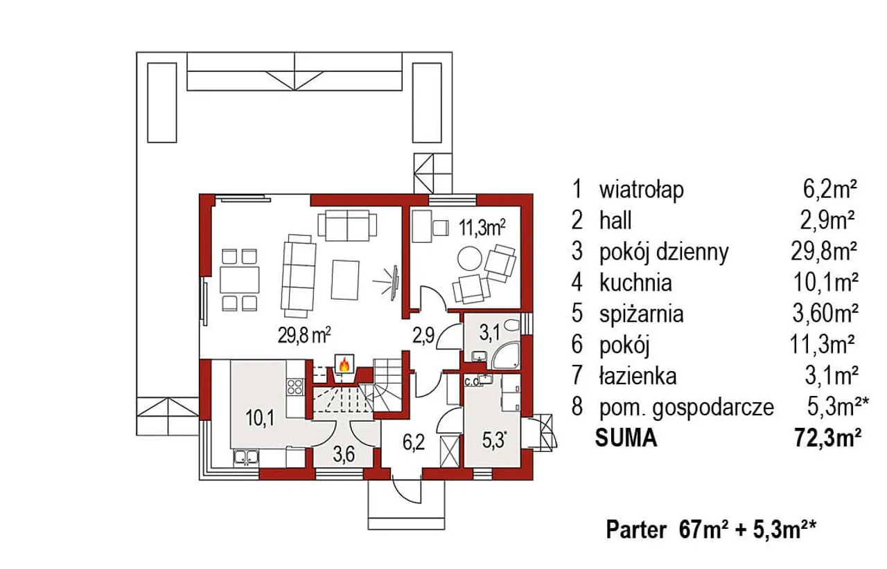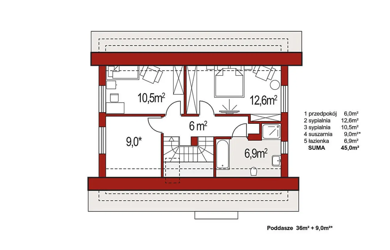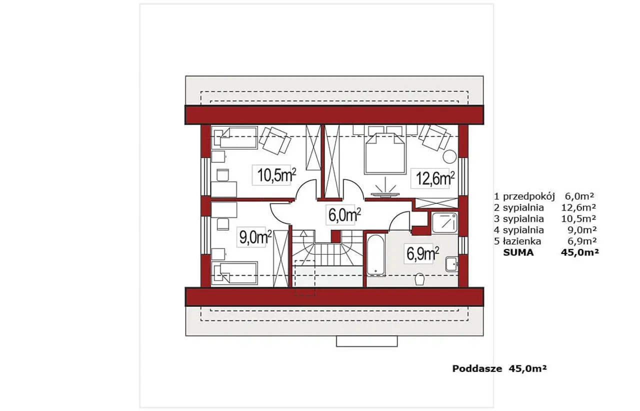 Wypełnij formularz i otrzymaj rysunki w pdf z dokładnymi wymiarami budynku i pomieszczeń (długość, szerokość, wysokość) dla projektu Jantar MDM wersja A