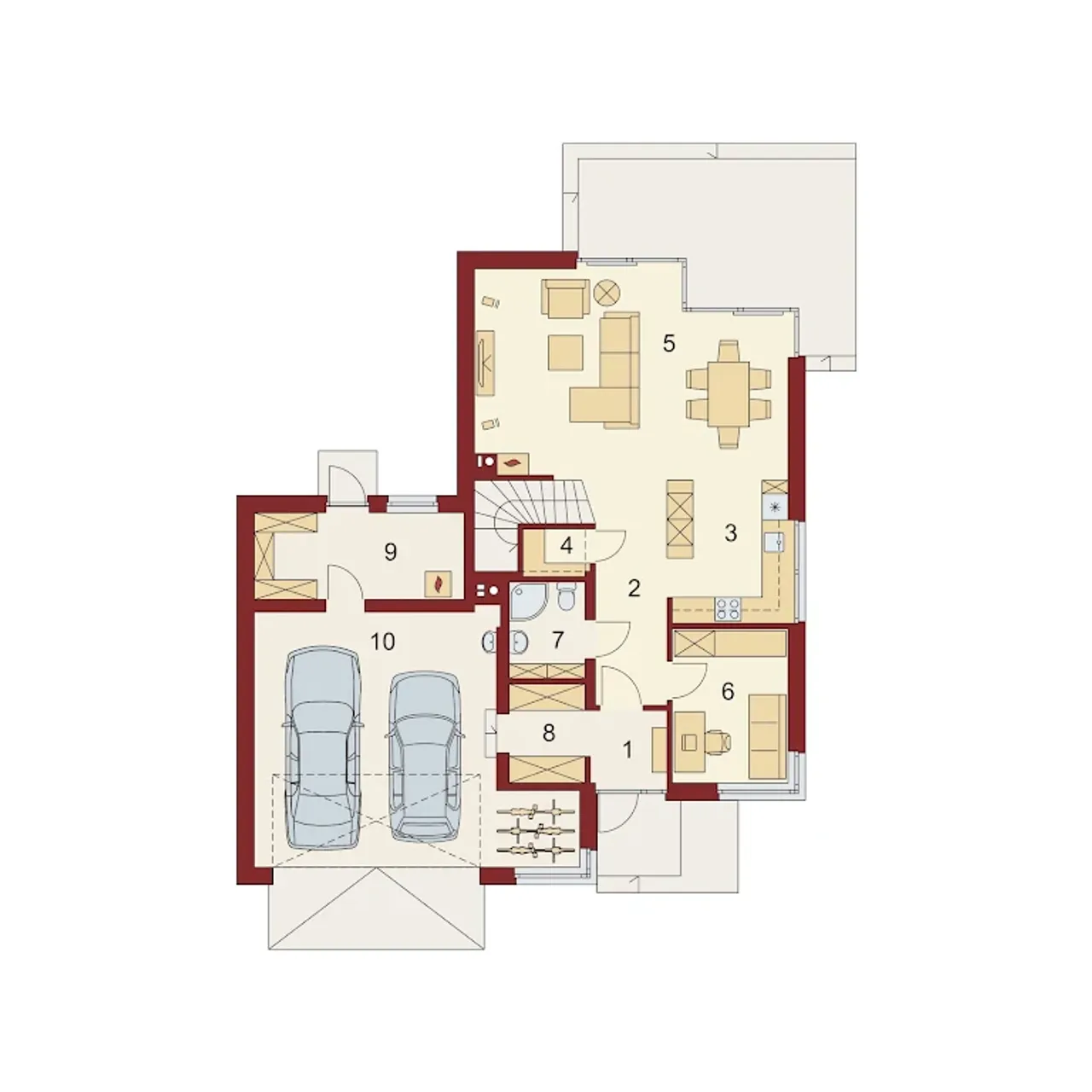 Gotowy projekt domu January 2 PS to ciekawy, funkcjonalny projekt domu w technologii murowanej. January 2 PS posiada garaż dwustanowiskowy zlokalizowany w bryle budynku. January 2 PS to dom parterowy z poddaszem użytkowym w stylu tradycyjnym o kubaturze 517.01 m3. January 2 PS to dom całoroczny z dachem dwuspadowym o kącie nachylenia 45 stopni.