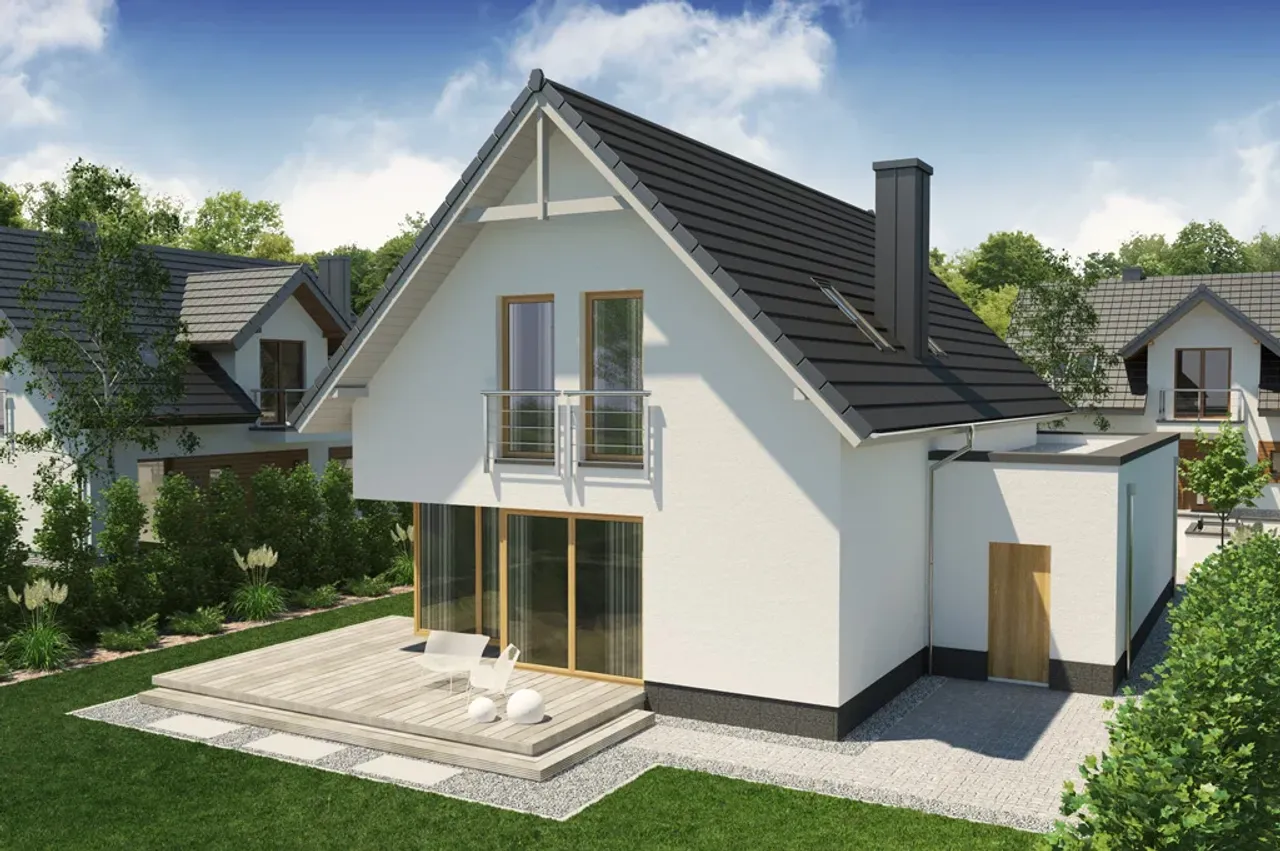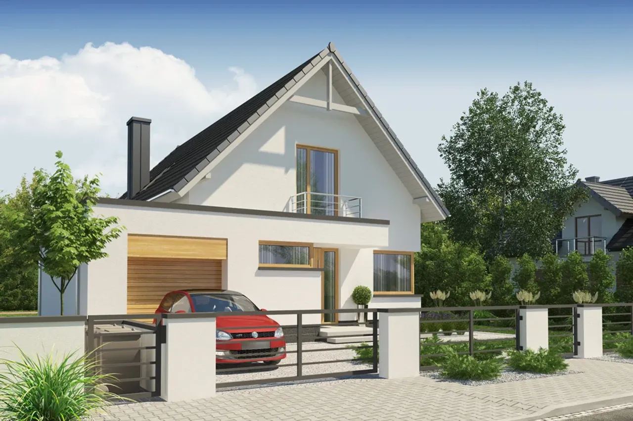 Gotowy projekt domu January PS to ciekawy, funkcjonalny projekt domu w technologii murowanej. January PS posiada garaż jednostanowiskowy zlokalizowany w bryle budynku. January PS to dom parterowy z poddaszem użytkowym w stylu tradycyjnym o kubaturze 471.84 m3. January PS to dom całoroczny z dachem dwuspadowym o kącie nachylenia 45 stopni.