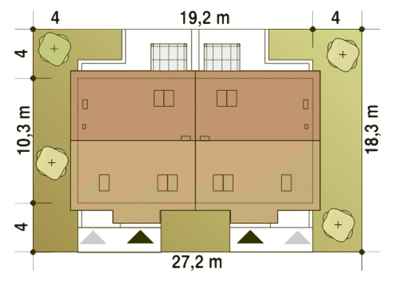 Wypełnij formularz i otrzymaj rysunki w pdf z dokładnymi wymiarami budynku i pomieszczeń (długość, szerokość, wysokość) dla projektu Jarząbek II z garażem 1-st. bliźniak A-BL2 na paliwo stałe