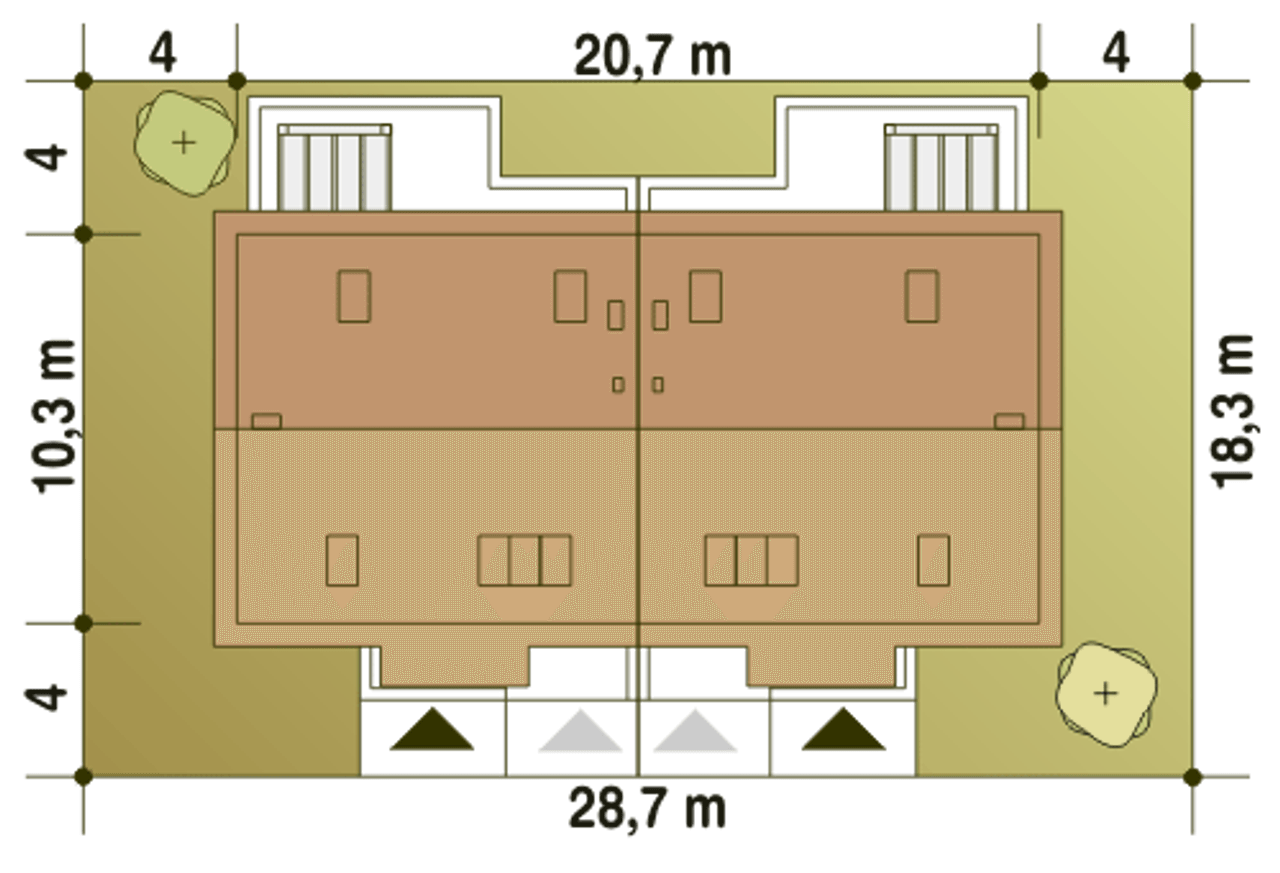 Wypełnij formularz i otrzymaj rysunki w pdf z dokładnymi wymiarami budynku i pomieszczeń (długość, szerokość, wysokość) dla projektu Jarząbek III z garażem 1-st. bliźniak A1-BL1