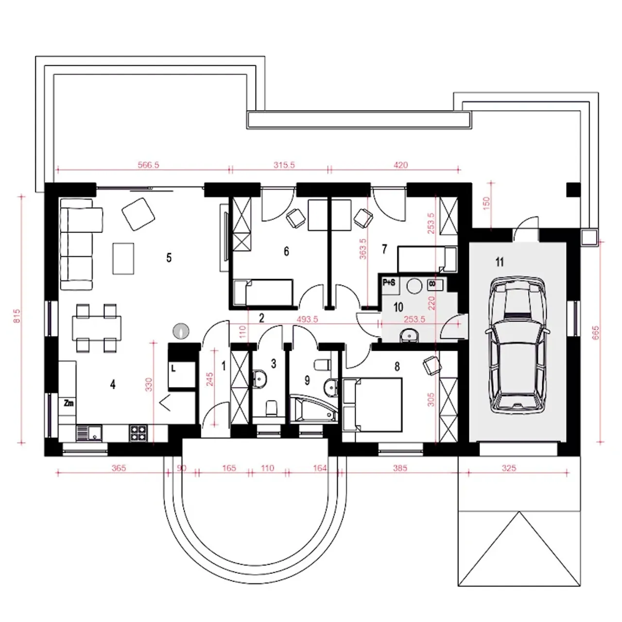 Wypełnij formularz i otrzymaj rysunki w pdf z dokładnymi wymiarami budynku i pomieszczeń (długość, szerokość, wysokość) dla projektu Jarzębina bez garażu B