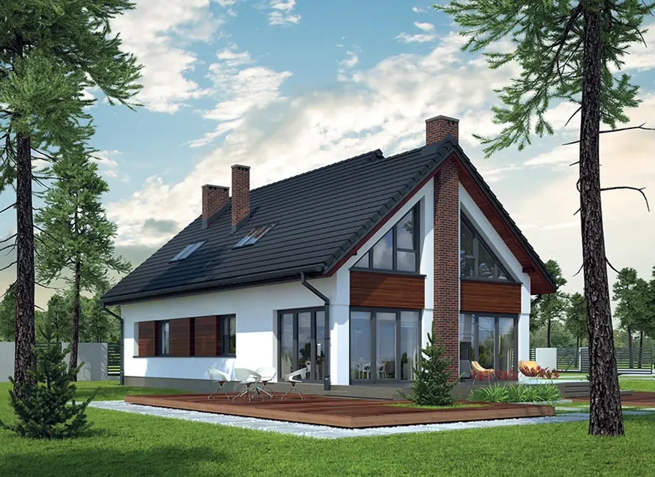 Kupując projekt w technologii murowanej powinieneś budować dom murowany. Zupełna zmiana technologii na szkieletową wymaga przeprojektowania całego budynku ( zmieniają się obciążenia, fundamenty, konstrukcja dachu). Wydamy zgodę na takie przeprojektowanie jednak wiążę się to z dużymi kosztami. Istnieją firmy wykonawcze, które podejmują się zmiany technologii budowy bezpłatnie przy skorzystaniu z ich usług wykonawczych. Zdarza się, że pracownia architektoniczna przygotowuje warianty konkretnego projektu przewidując także inne technologie. Prosimy o sprawdzenie czy istnieje poszukiwana wersja projektu, w zakładce - warianty projektu.