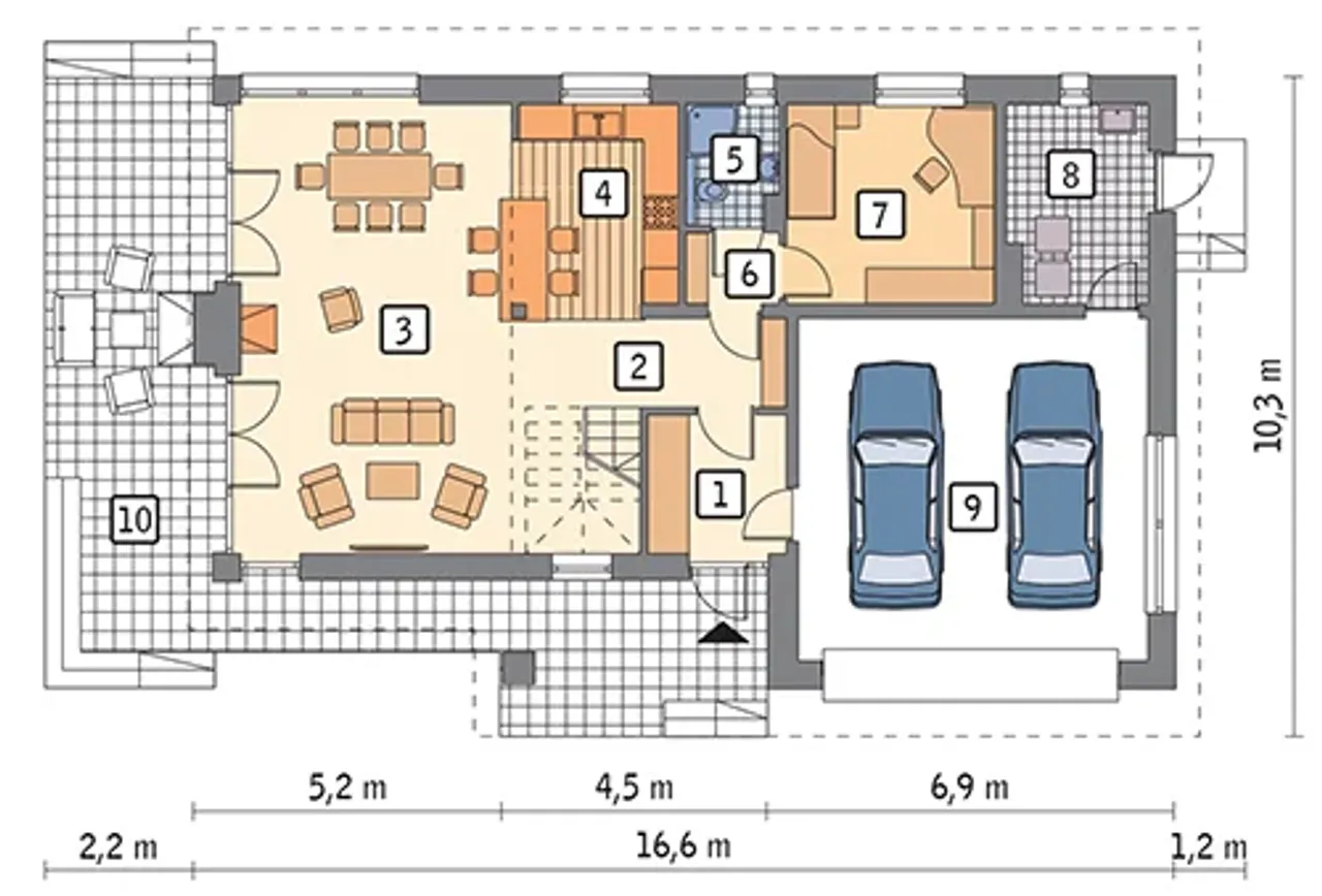 Wypełnij formularz i otrzymaj rysunki w pdf z dokładnymi wymiarami budynku i pomieszczeń (długość, szerokość, wysokość) dla projektu Jasna przestrzeń - wariant VI (z wentylacją mechaniczną i rekuperacją) - M210f