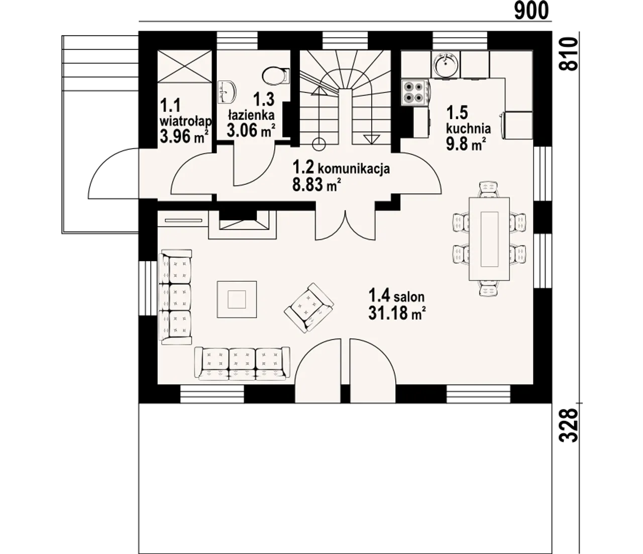 - opisu architektonicznego zawierającego m.in. opis przyjętych rozwiązań, zestawienia powierzchni (użytkowej, zabudowy, netto), kubatury oraz powierzchni poszczególnych pomieszczeń