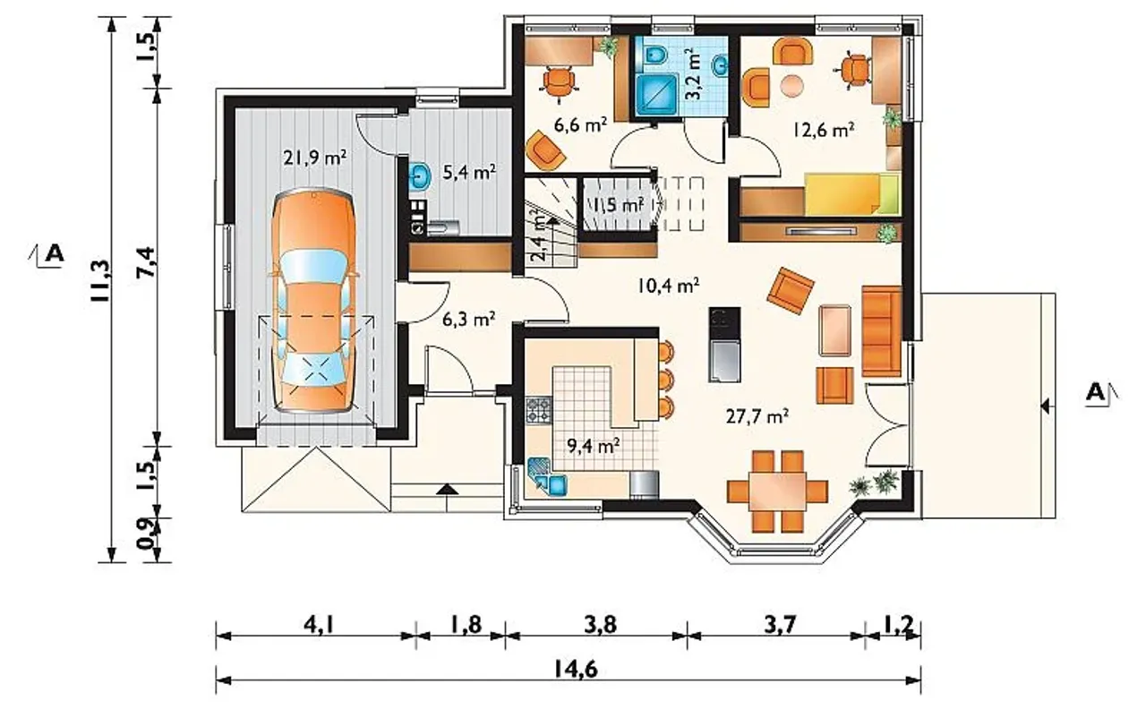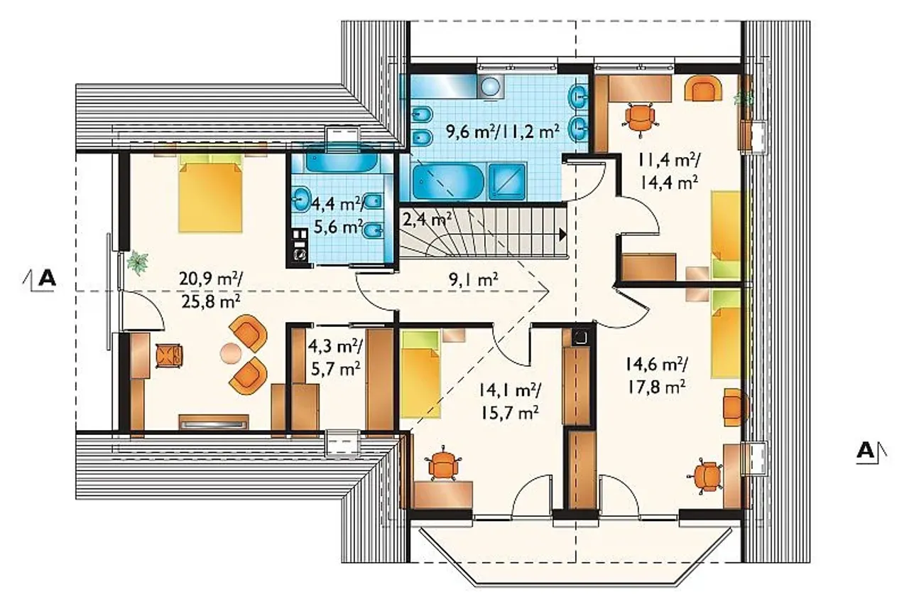 - elewacje - pokazują dokładny wygląd domu od frontu, z tyłu i z boków