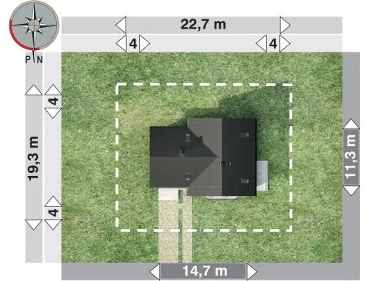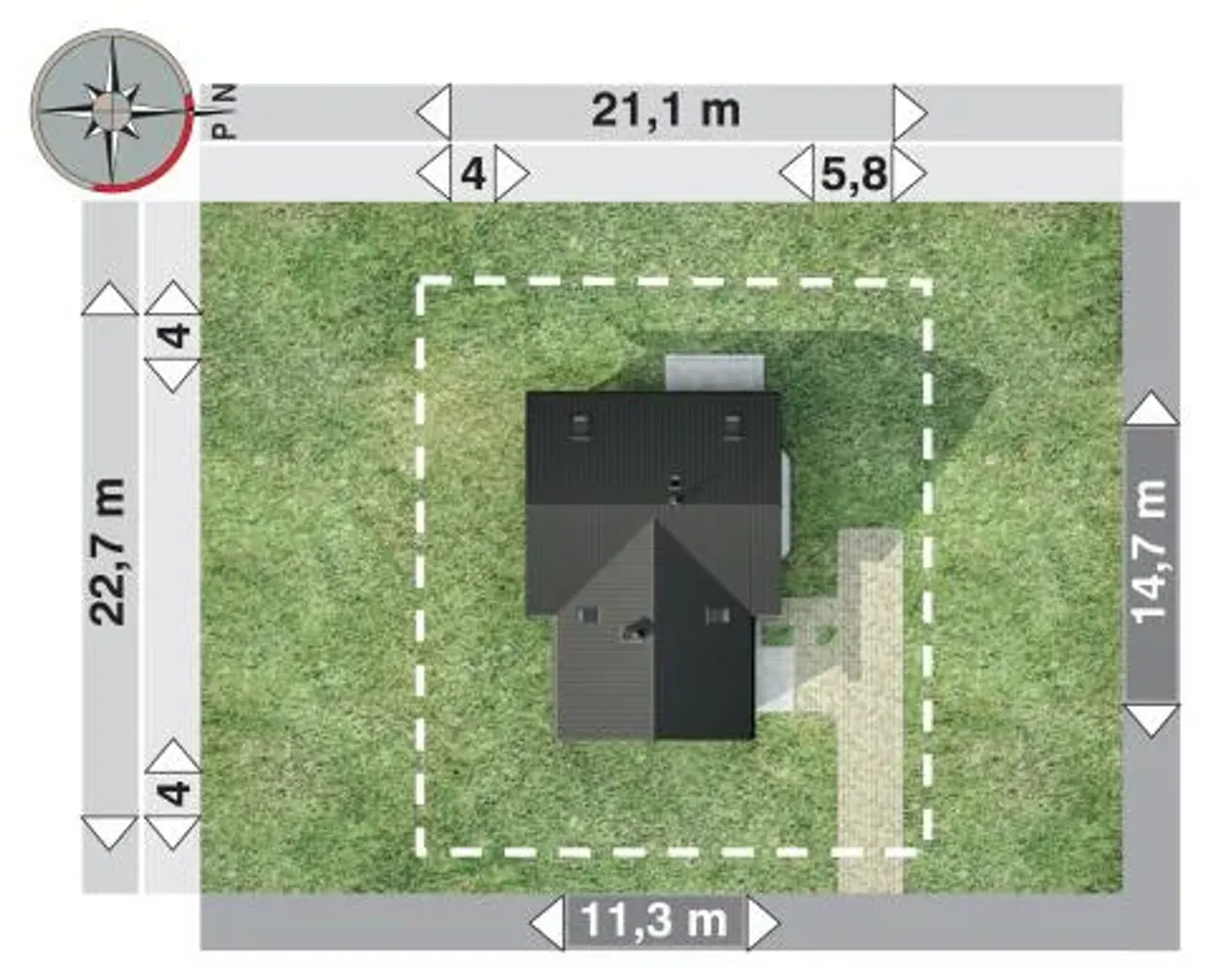 Wypełnij formularz i otrzymaj rysunki w pdf z dokładnymi wymiarami budynku i pomieszczeń (długość, szerokość, wysokość) dla projektu Jelonek Max