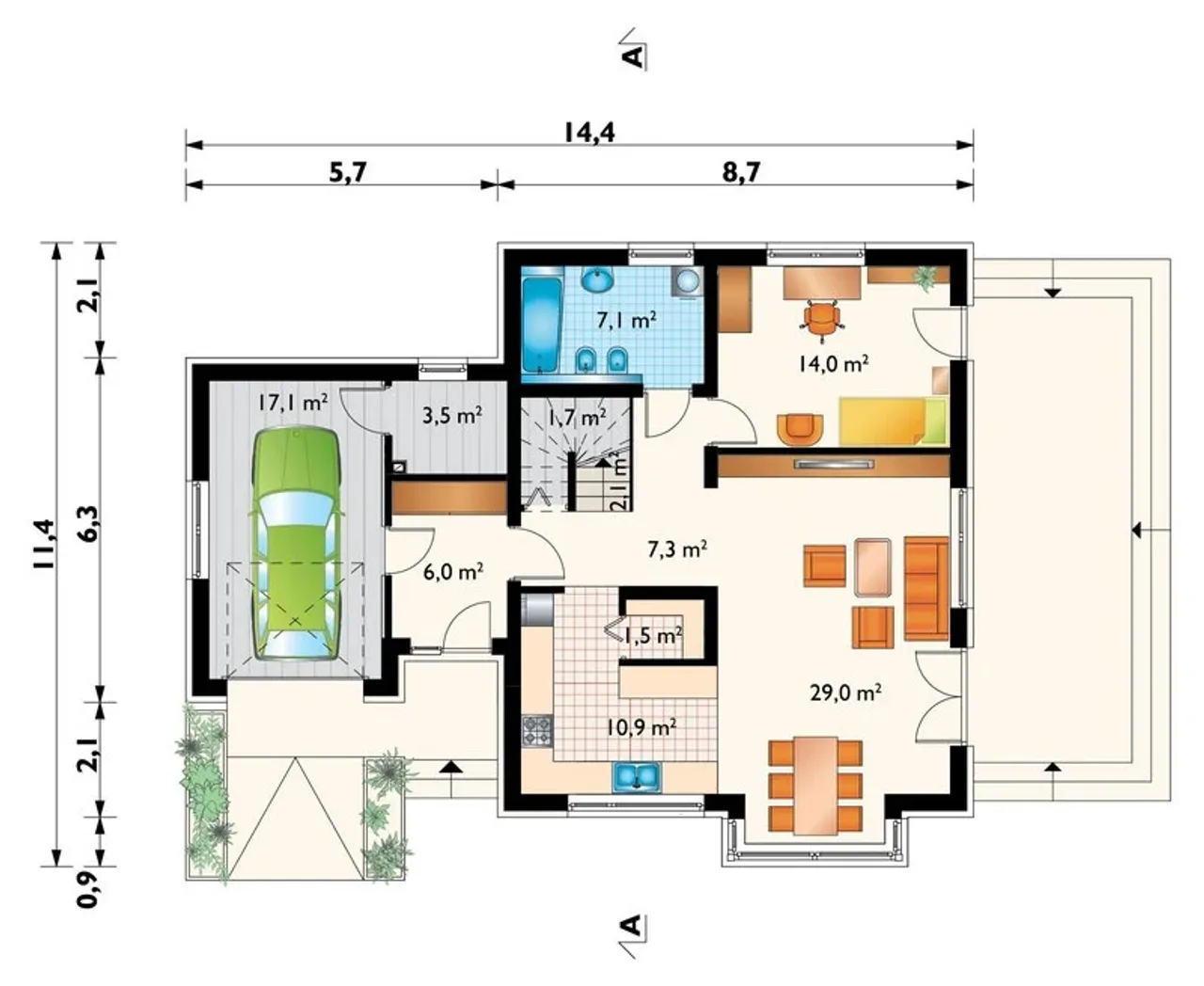9. Pokój dzienny z jadalnią | 29,00 m² |