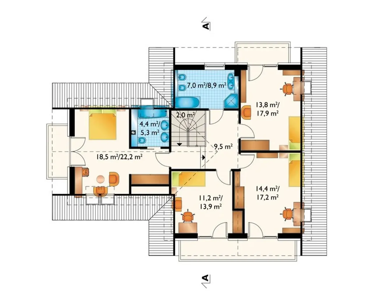 - elewacje - pokazują dokładny wygląd domu od frontu, z tyłu i z boków