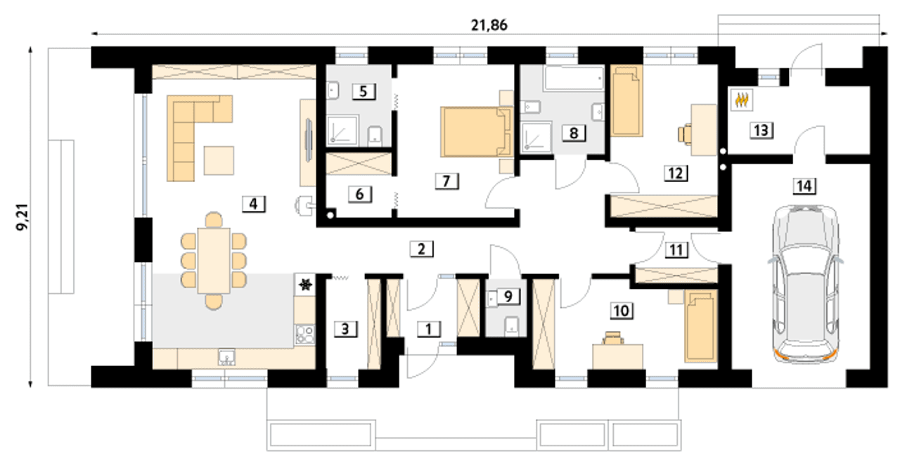 Wypełnij formularz i otrzymaj rysunki w pdf z dokładnymi wymiarami budynku i pomieszczeń (długość, szerokość, wysokość) dla projektu Jemioła 9