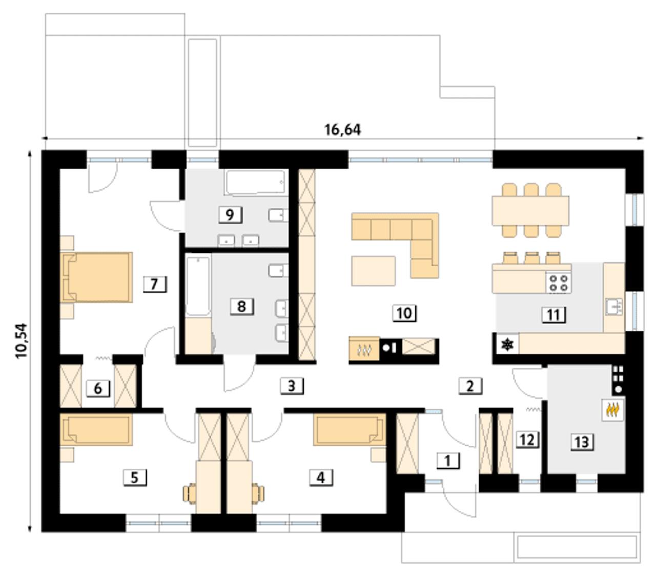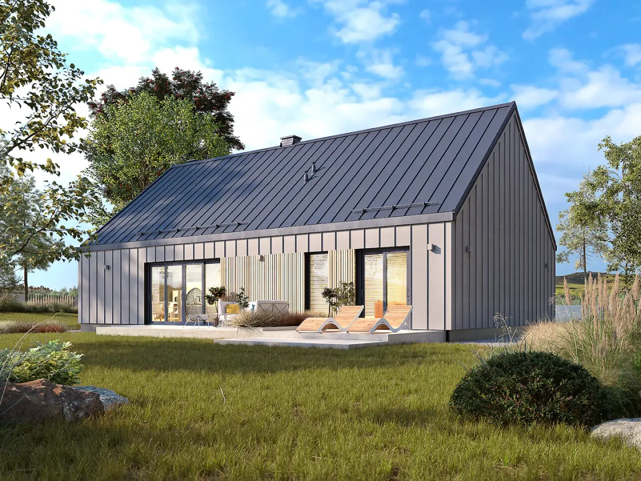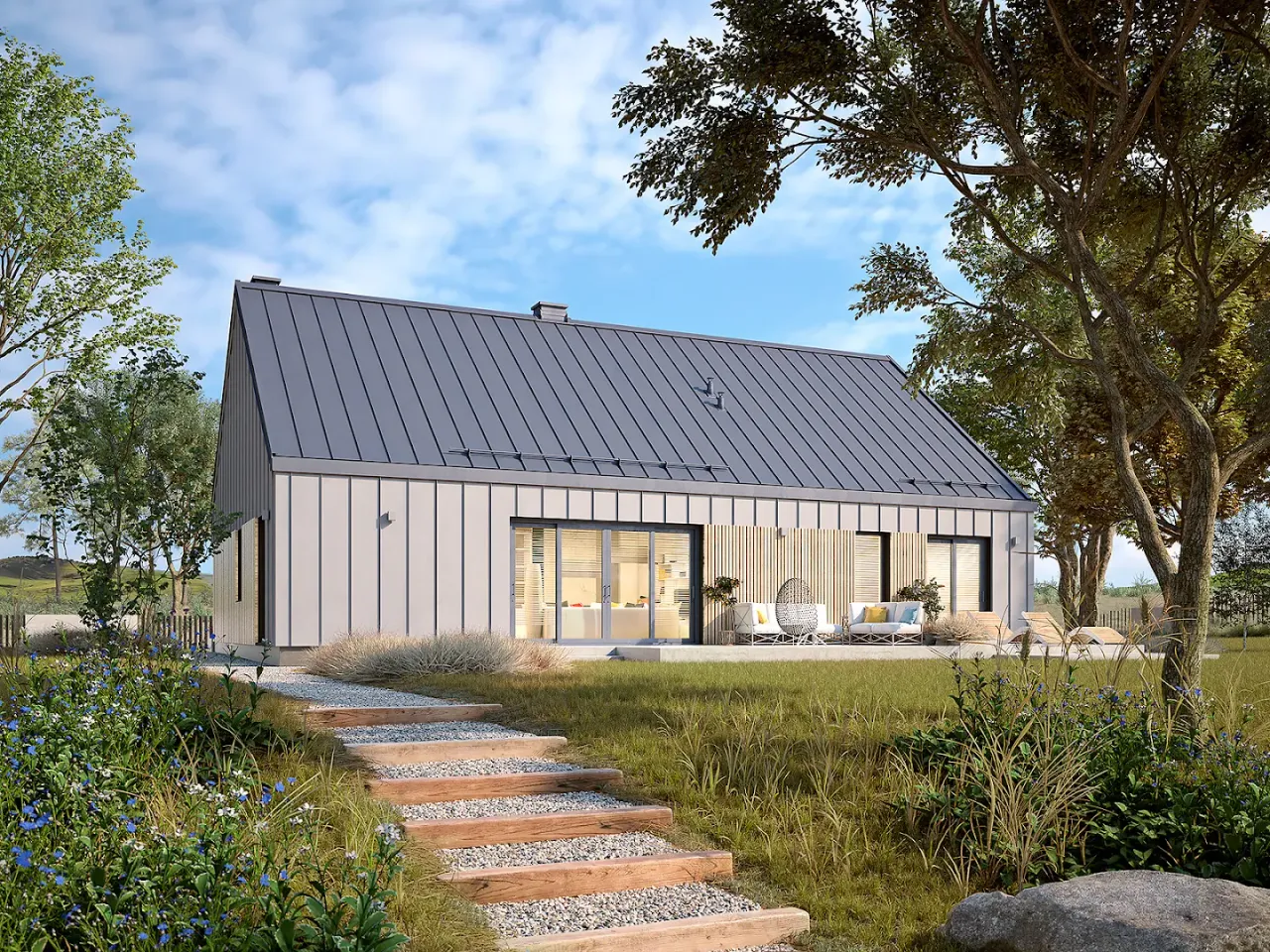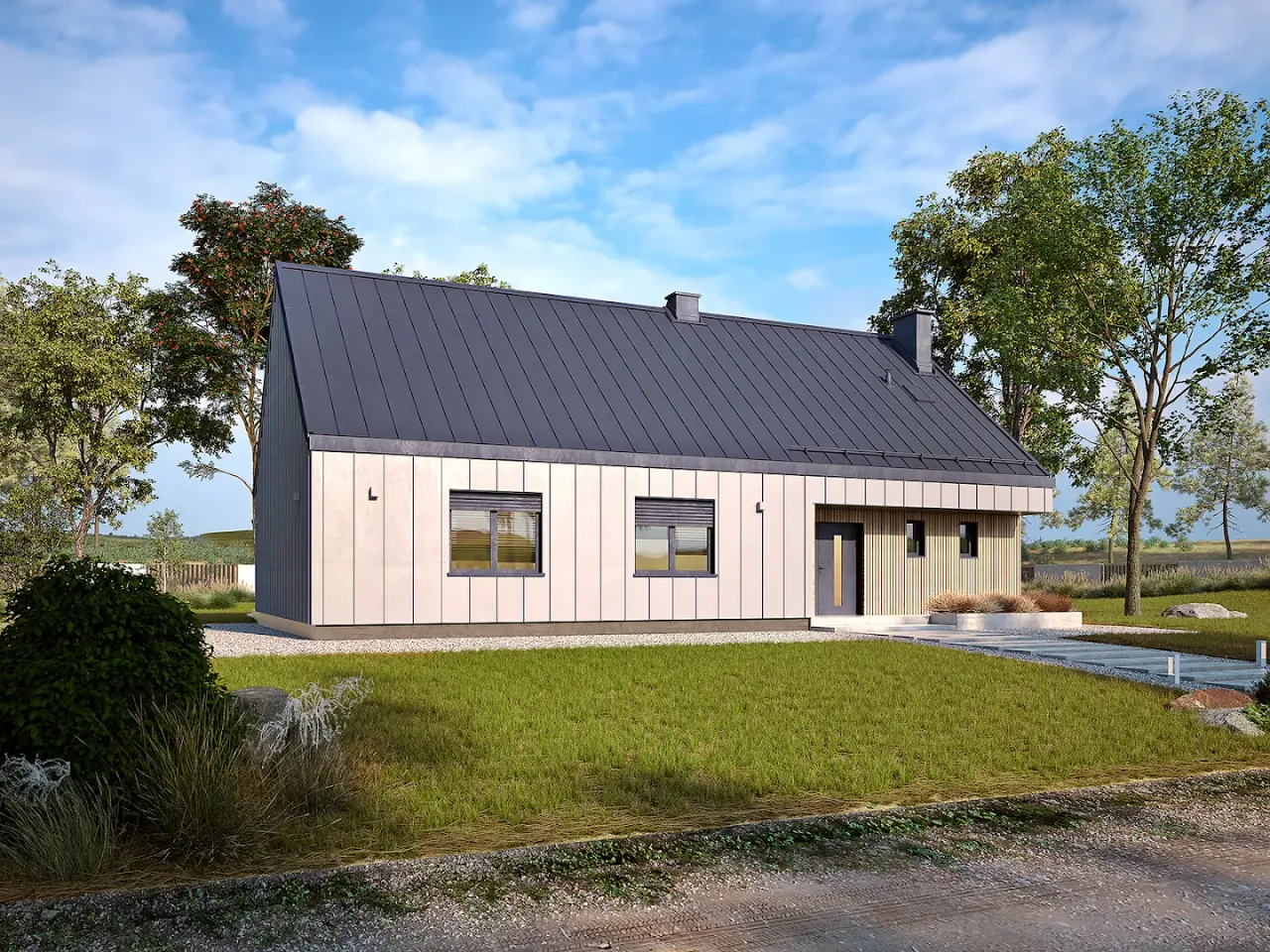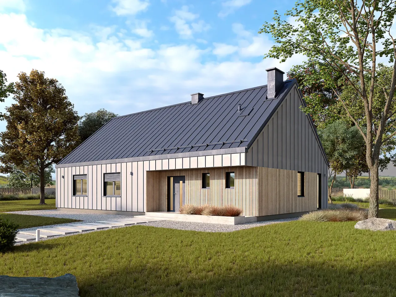 Projekt Jemioła 10 przyciąga uwagę swoim nowoczesnym, a jednocześnie funkcjonalnym designem. Pierwsze, co rzuca się w oczy, to elegancka bryła budynku, która doskonale wpisuje się w założenia współczesnej architektury. Przestronny układ pomieszczeń sprawia, że wnętrze wydaje się wyjątkowo przyjazne dla rodziny. Duże okna zapewniają doskonałe doświetlenie, tworząc przytulną atmosferę i łącząc wnętrze z otaczającym ogrodem. Projekt Jemioła 10 oferuje przemyślany podział przestrzeni, co pozwala na wygodne użytkowanie każdego z pomieszczeń. مجموعة الأدوات المتوفرة يجعل الاقامة في هذا المنزل امرا مرغوبا ומהווה הבטחה לשנים של מגורים נעימים.