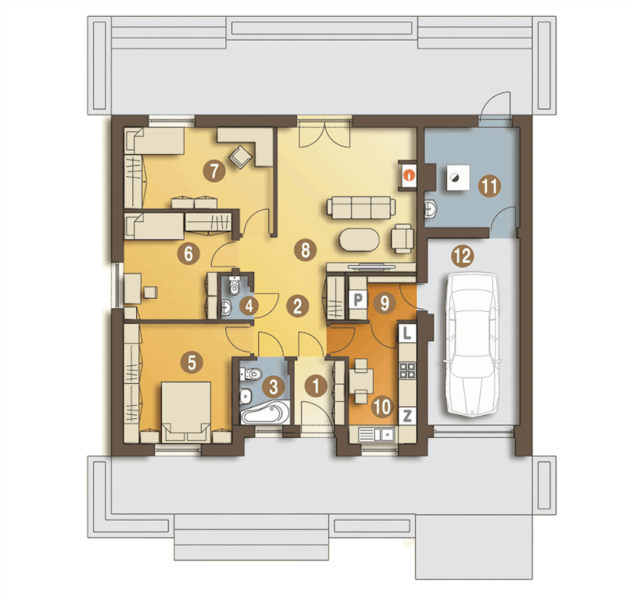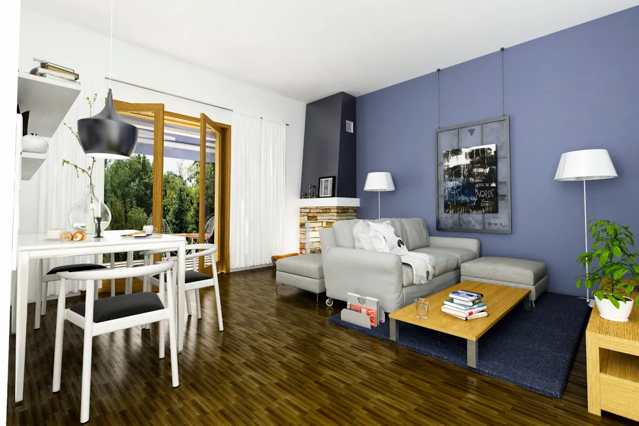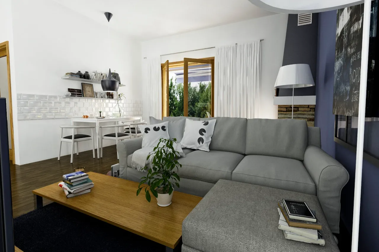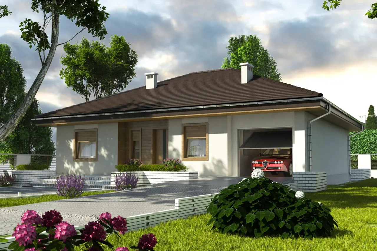 Projekt przedstawia ciekawe połączenie nowoczesnego stylu z funkcjonalnością, idealny dla osób ceniących komfort i przemyślane rozwiązania.
