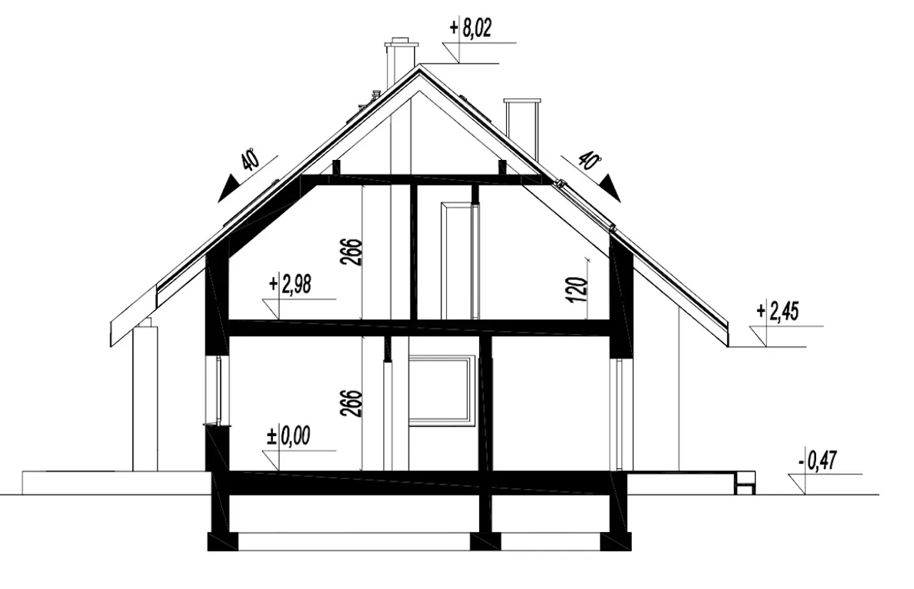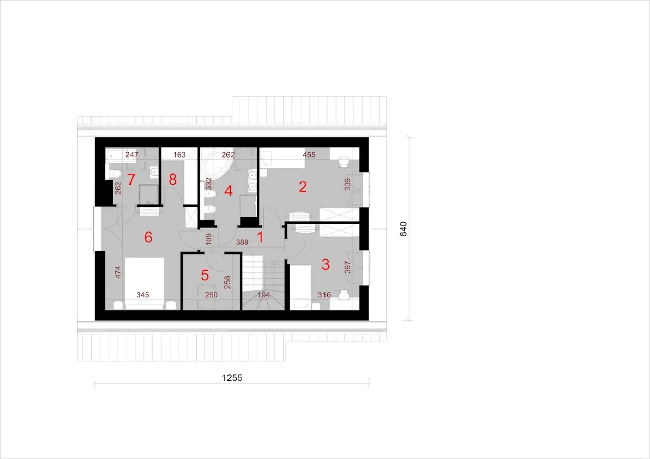 - Stropy: parter – żelbetowy monolityczny, poddasze - drewniany.