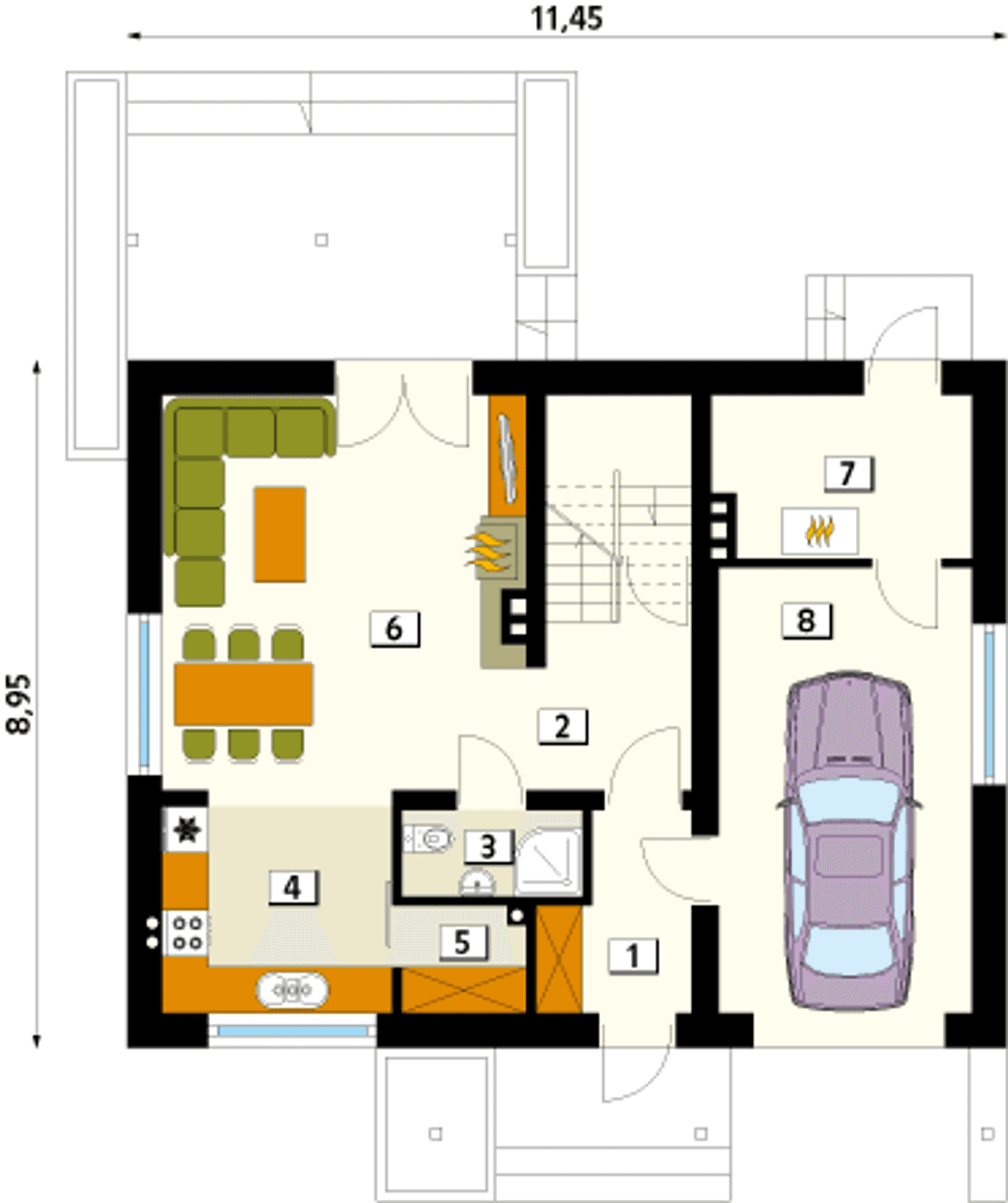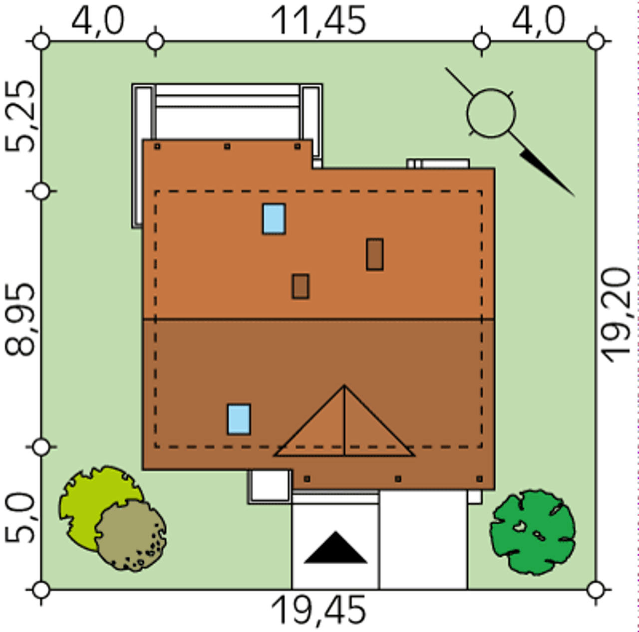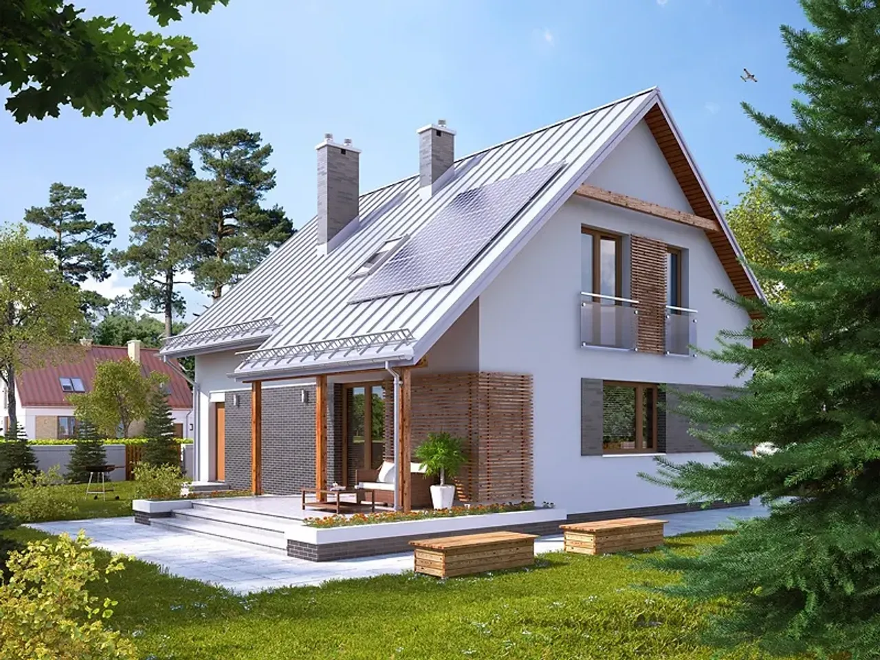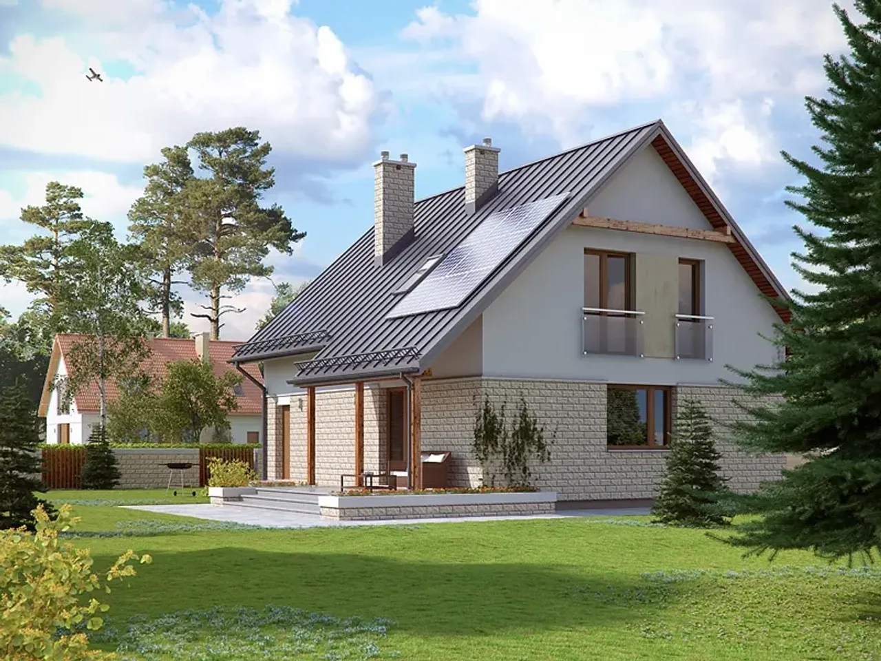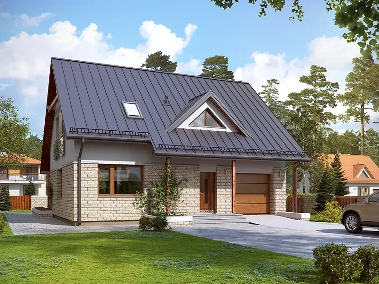 Gotowy projekt domu o nazwie Jeżyna 3 (CE) to budynek całoroczny , zaprojektowany w technologii murowanej - tradycyjnej. Elewacja budynku wykończona jest w stylu nowoczesnym, natomiast dom pokryty jest dachem dwuspadowym. Projekt domu Jeżyna 3 (CE) zmieści się na działkę o szerokości 19.45, jego powierzchnia użytkowa 116.49 obejmuje parter oraz poddasze budynku. W projekcie Jeżyna 3 (CE) w garażu zmieści się jedno auto (prosimy o sprawdzenie w innych wersjach projektu Jeżyna 3 (CE)).Jest to dom energooszczędny.z kominkiem,bez piwnicy.