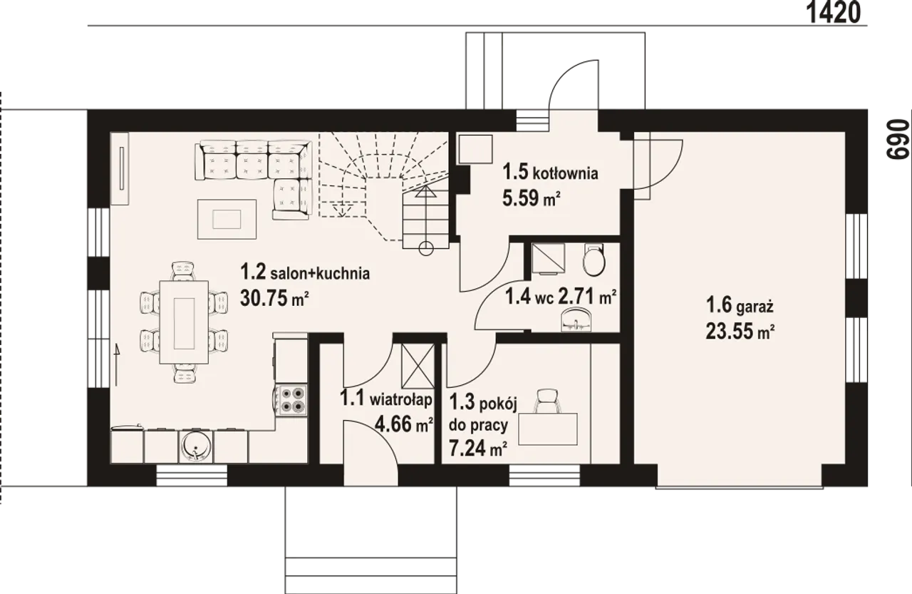 - rzutów kondygnacji użytkowych (parteru i jeśli występują: poddasza, piętra, piwnic)