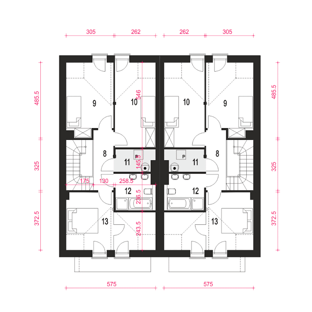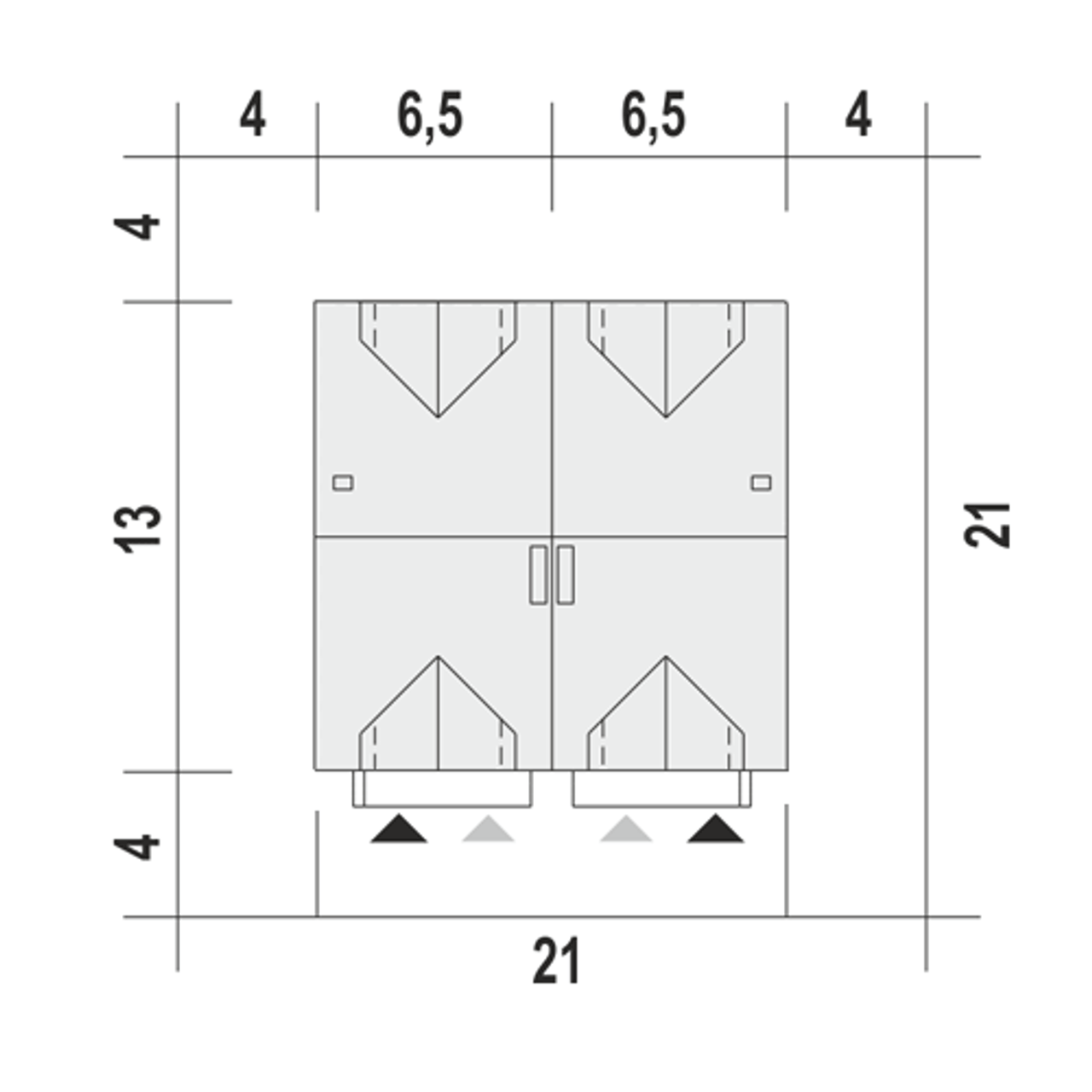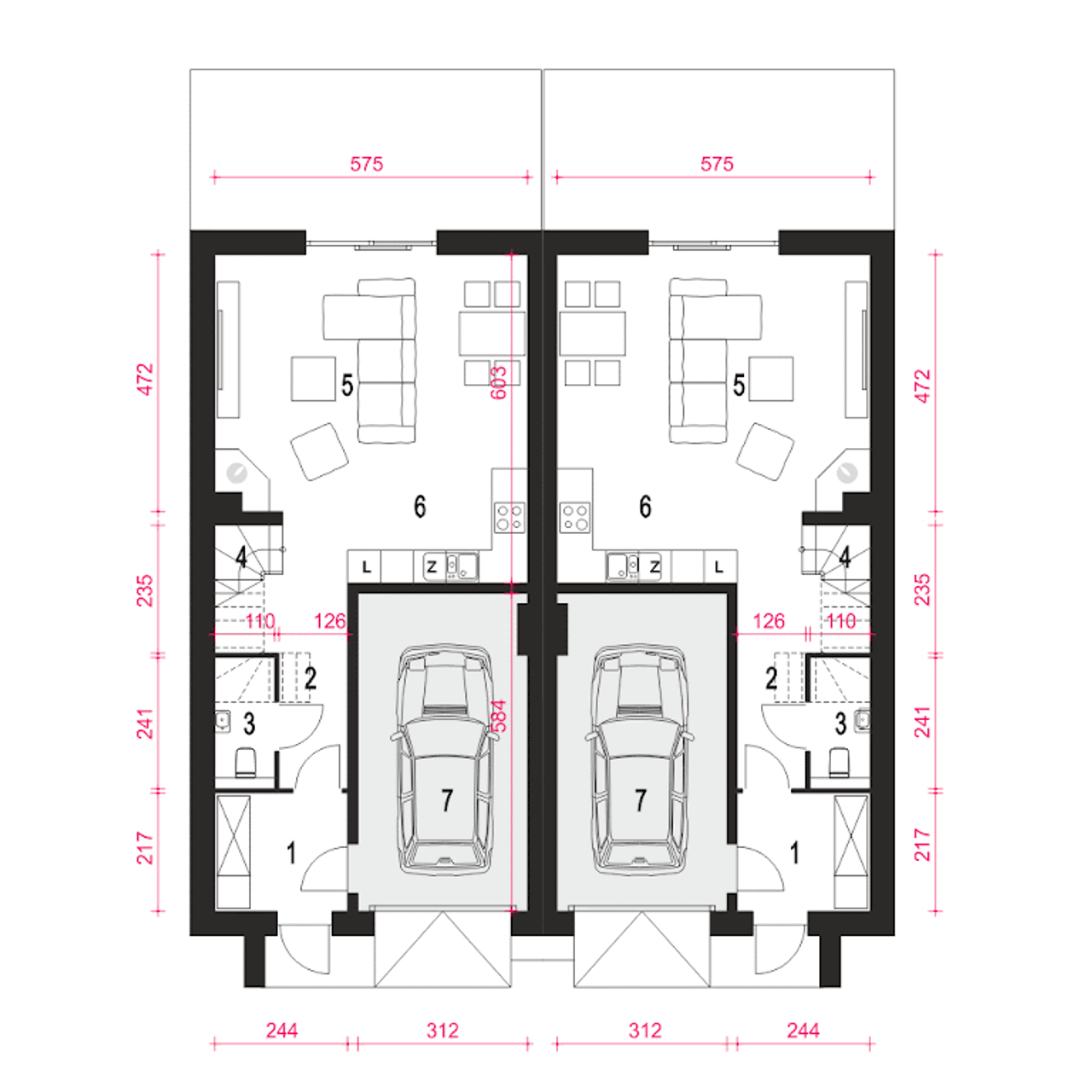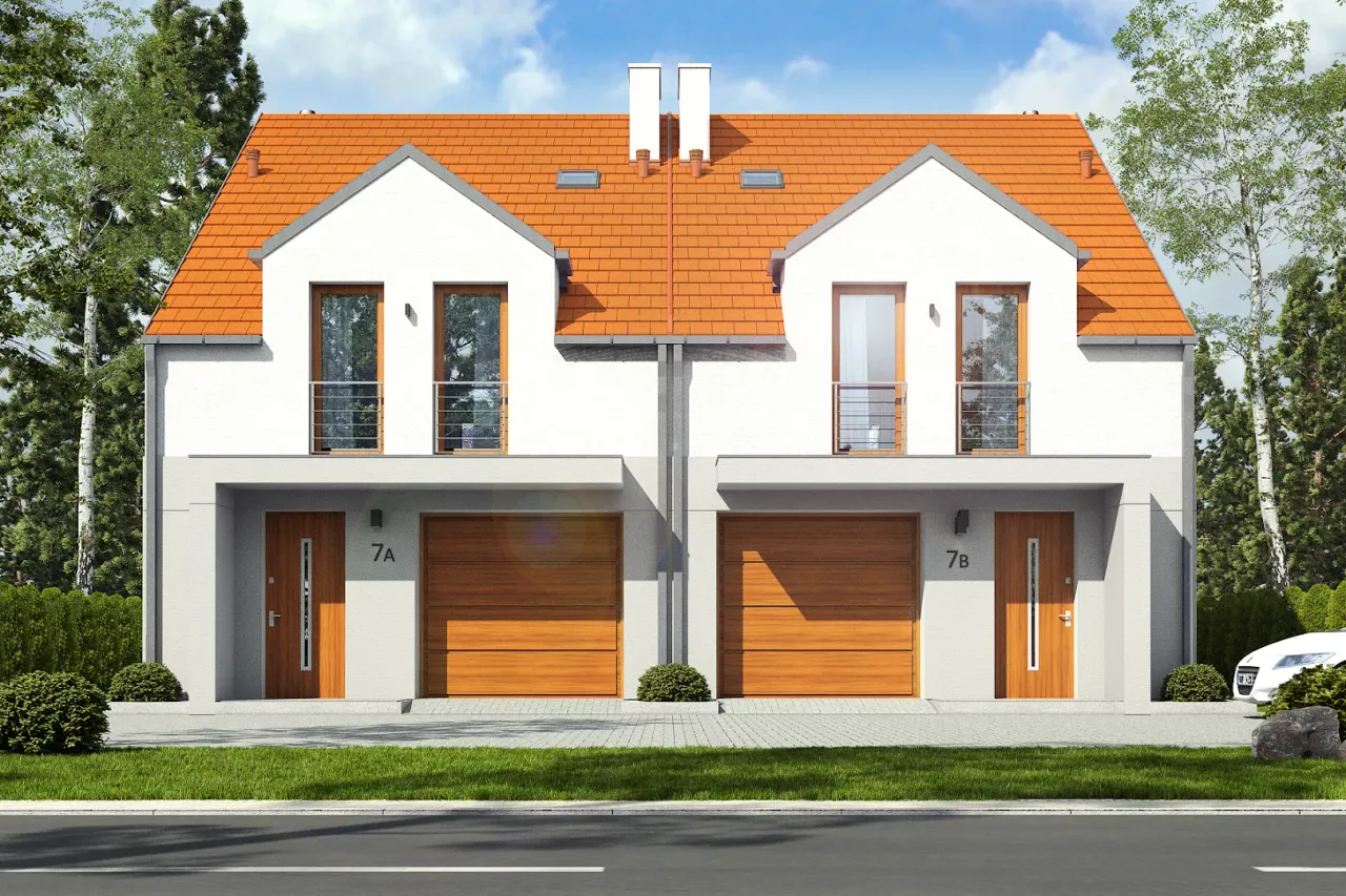 Wypełnij formularz i otrzymaj rysunki w pdf z dokładnymi wymiarami budynku i pomieszczeń (długość, szerokość, wysokość) dla projektu Jukka z garażem 1-st. bliźniak A-BL