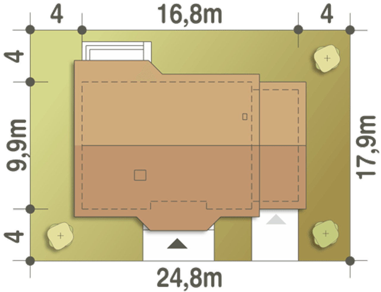 Wypełnij formularz i otrzymaj rysunki w pdf z dokładnymi wymiarami budynku i pomieszczeń (długość, szerokość, wysokość) dla projektu Julek styl z garażem 1-st. A
