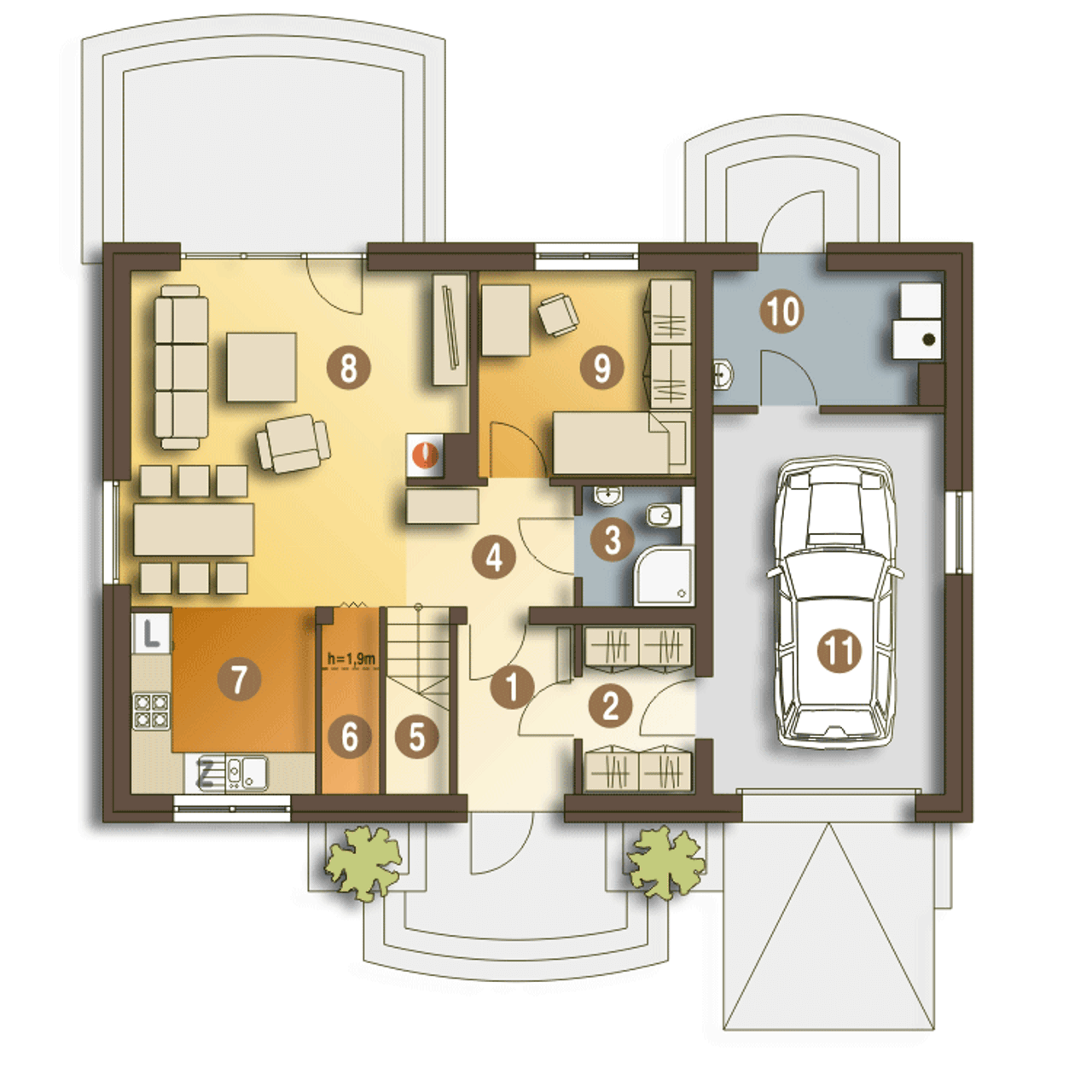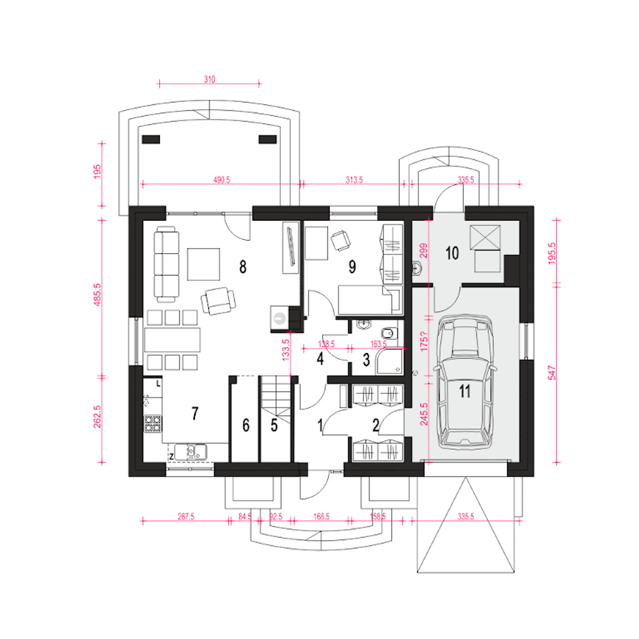 Wypełnij formularz i otrzymaj rysunki w pdf z dokładnymi wymiarami budynku i pomieszczeń (długość, szerokość, wysokość) dla projektu Julia II z garażem 1-st. A1