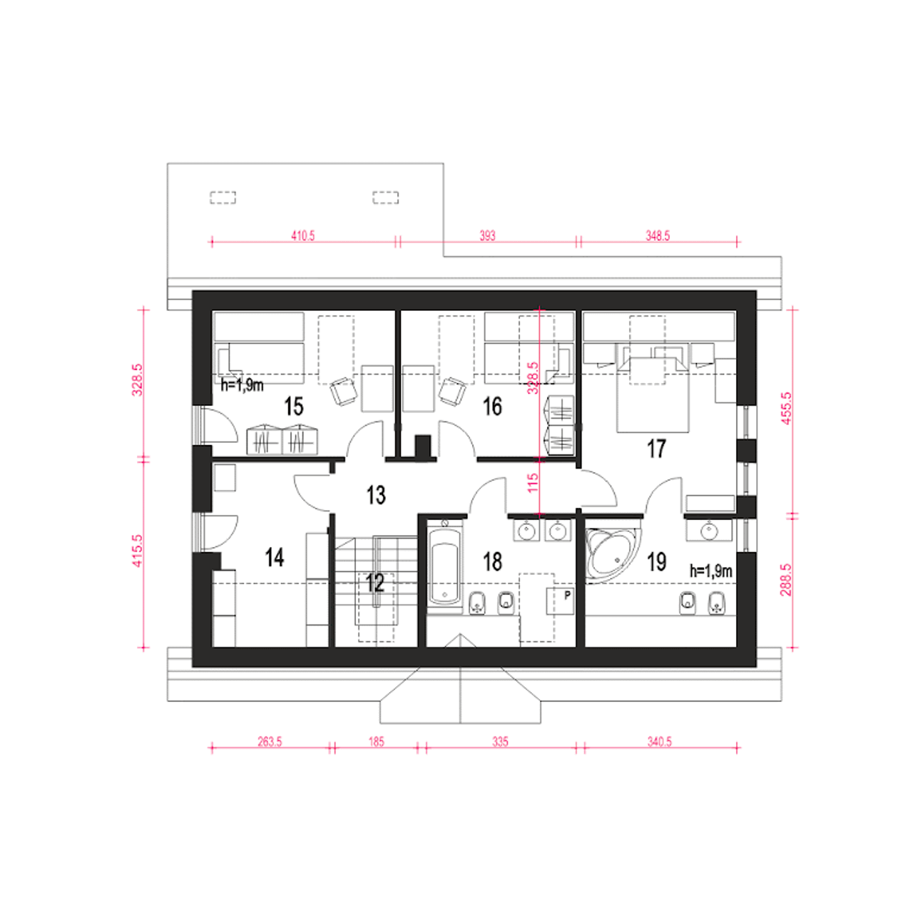 3. Garderoba (strych) | 7,40 (10,90) m² |