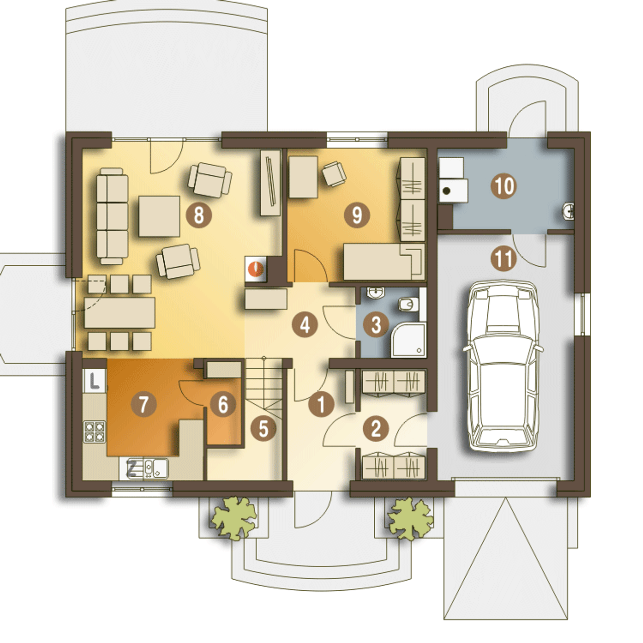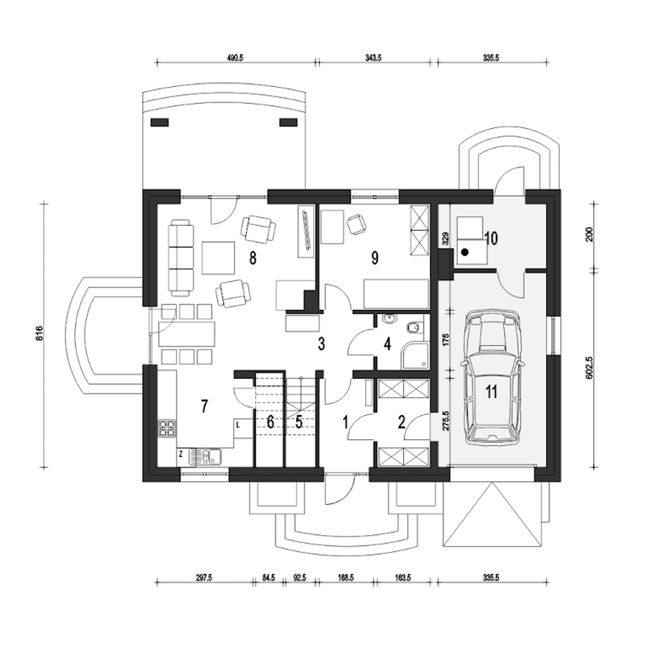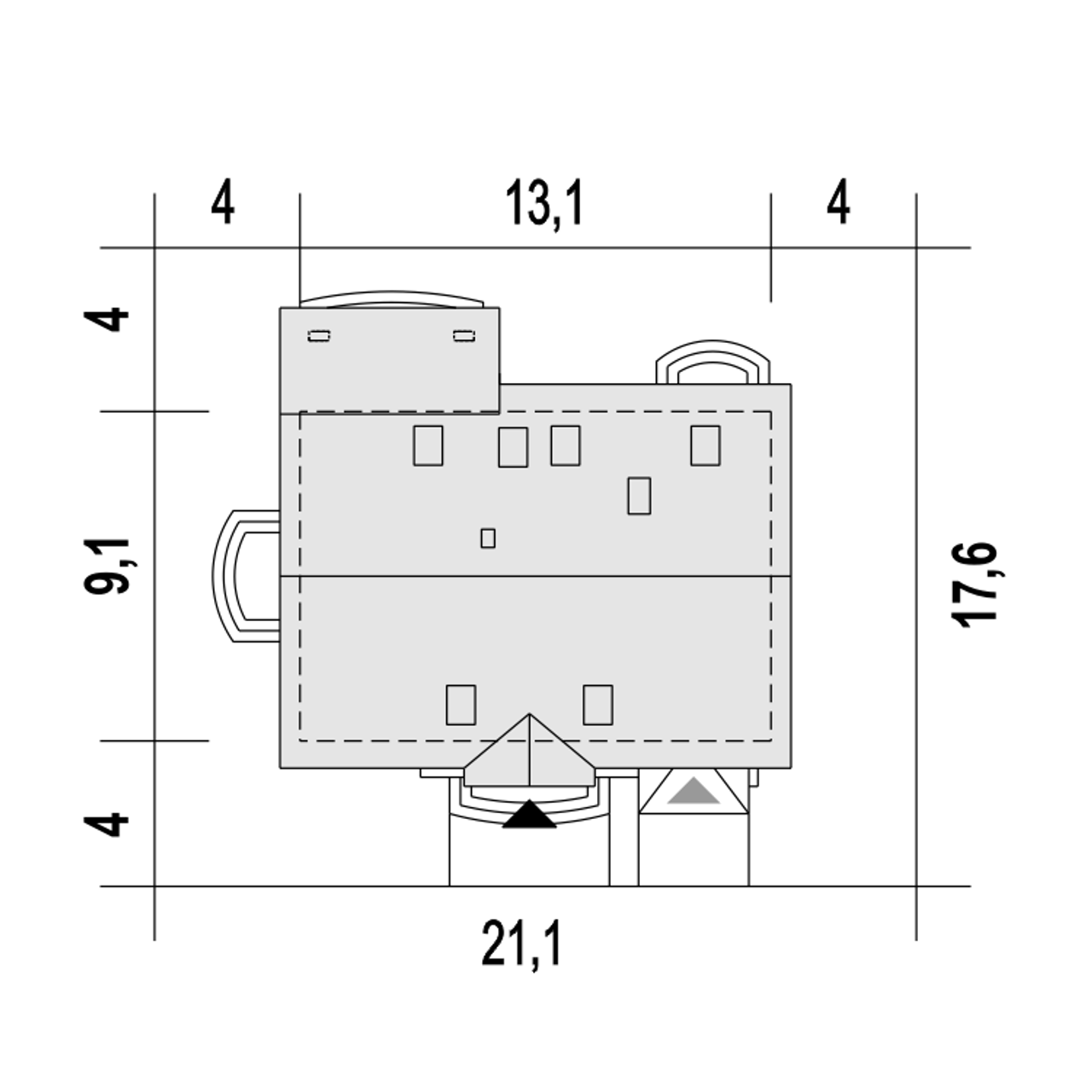 Wypełnij formularz i otrzymaj rysunki w pdf z dokładnymi wymiarami budynku i pomieszczeń (długość, szerokość, wysokość) dla projektu Julia z garażem 1-st. A