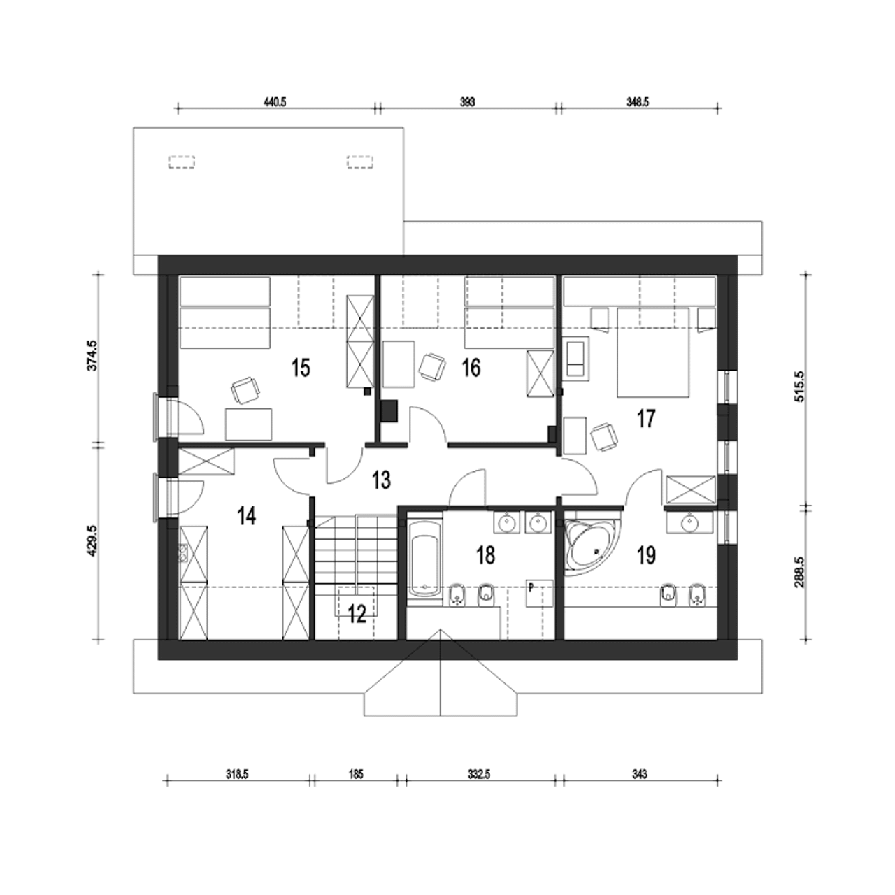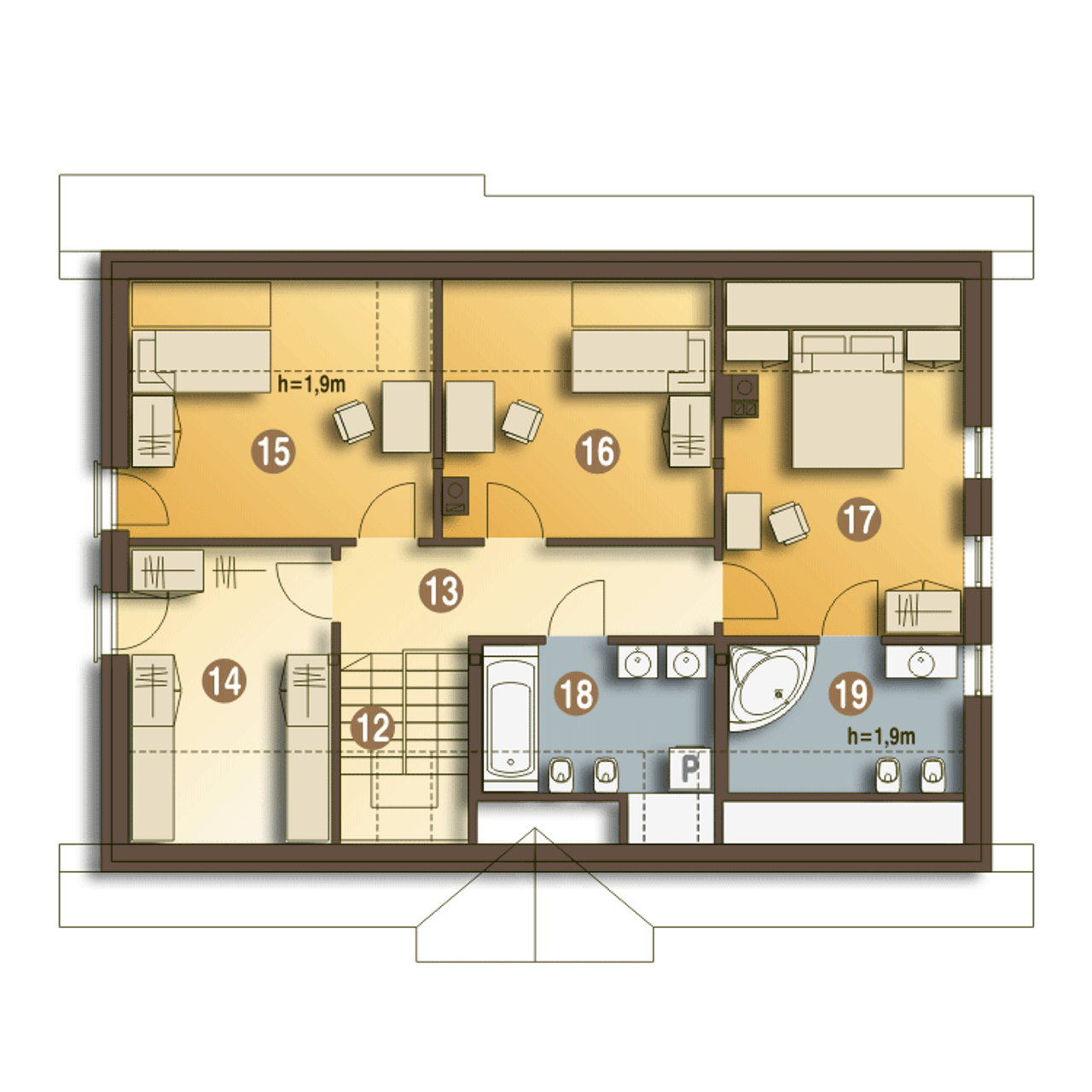 3. Garderoba (strych)* | 9,00 (12,50) m² |