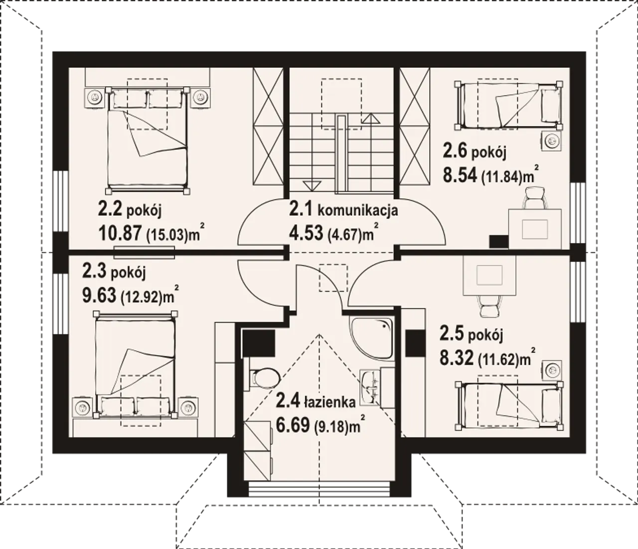 - rzutów kondygnacji użytkowych (parteru i jeśli występują: poddasza, piętra, piwnic)