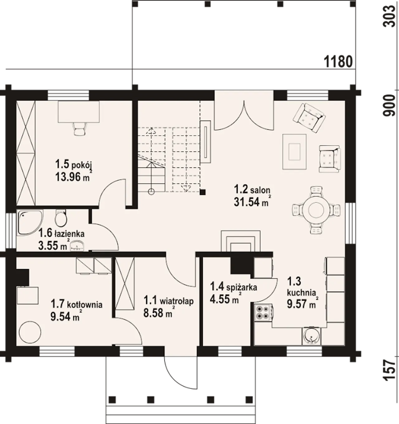 Wypełnij formularz i otrzymaj rysunki w pdf z dokładnymi wymiarami budynku i pomieszczeń (długość, szerokość, wysokość) dla projektu Jurgów średni 35 dw