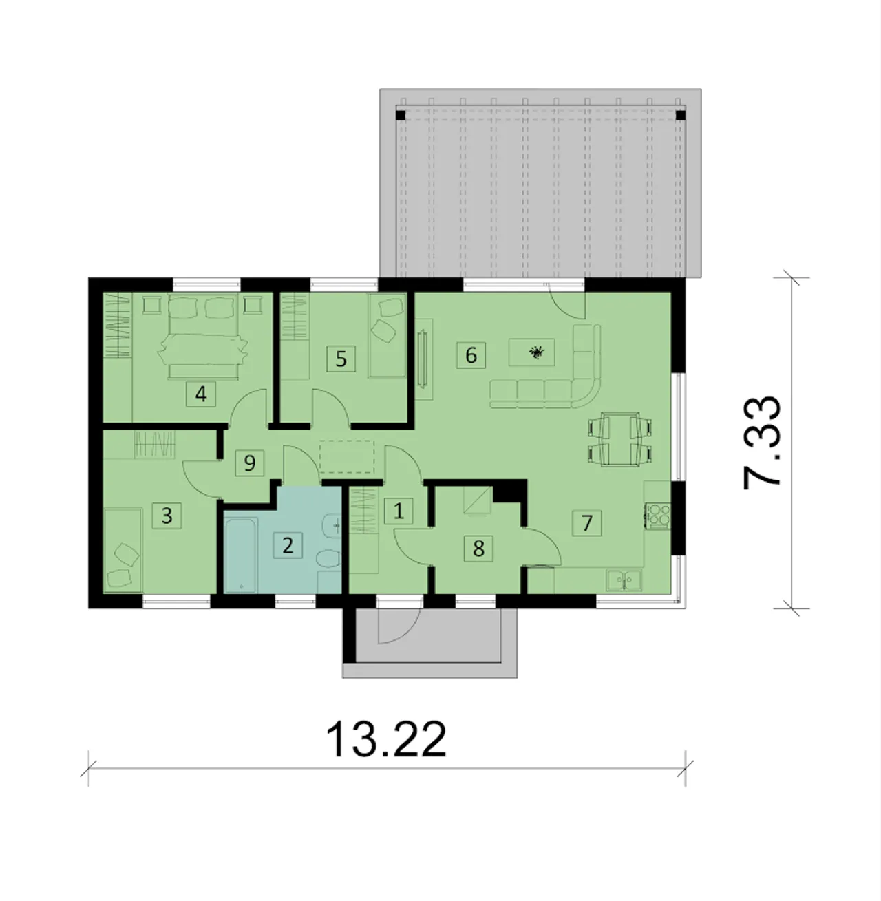 | Długość budynku 7.33 m |