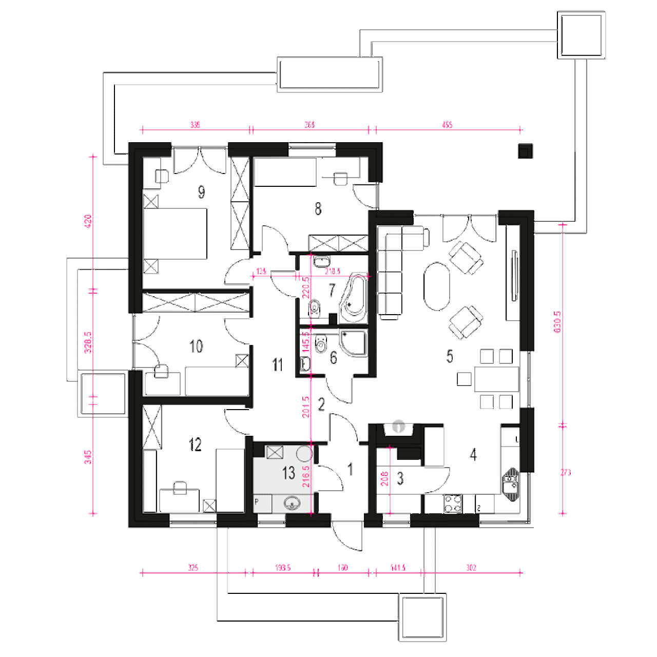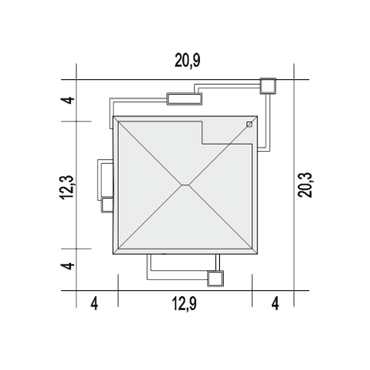 Wypełnij formularz i otrzymaj rysunki w pdf z dokładnymi wymiarami budynku i pomieszczeń (długość, szerokość, wysokość) dla projektu Kalcyt III bez garażu B