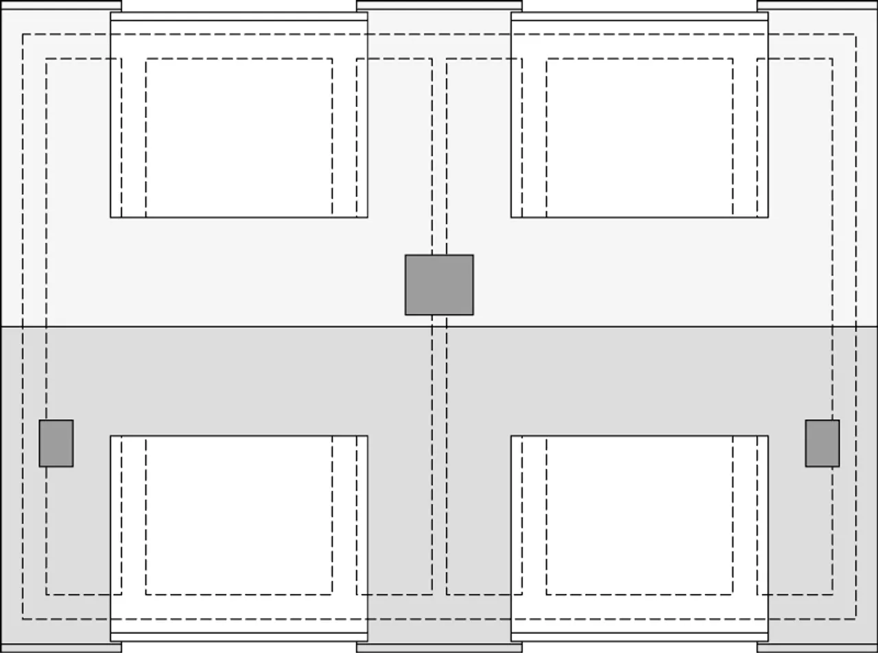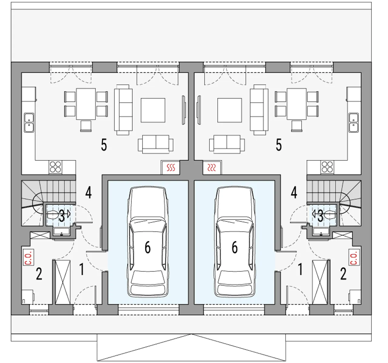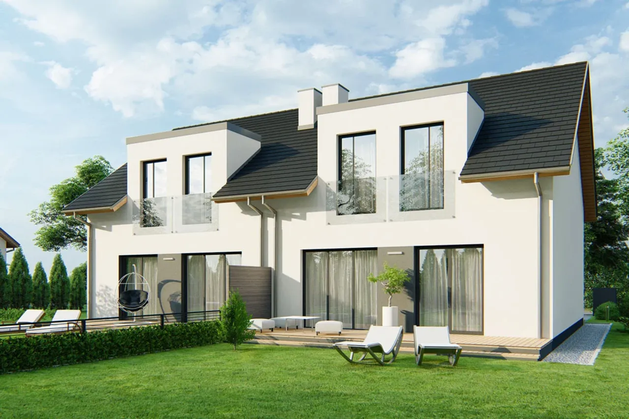 Wypełnij formularz i otrzymaj rysunki w pdf z dokładnymi wymiarami budynku i pomieszczeń (długość, szerokość, wysokość) dla projektu Kalipso 2 - dwulokalowy PLP