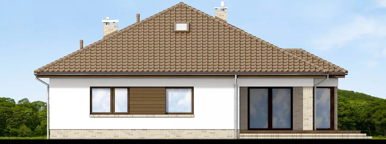 Przestronny taras rozszerza strefę dzienną, stając się Twoją prywatną oazą na świeżym powietrzu. Projekt domu Kalwados 2 spodoba się miłośnikom relaksu w ogrodzie i kameralnych spotkań na zewnątrz. Garaż na dwa auta, pięć pokoi i wydzielone miejsce na kominek sprawiają, że dom sprosta oczekiwaniom wymagających inwestorów.